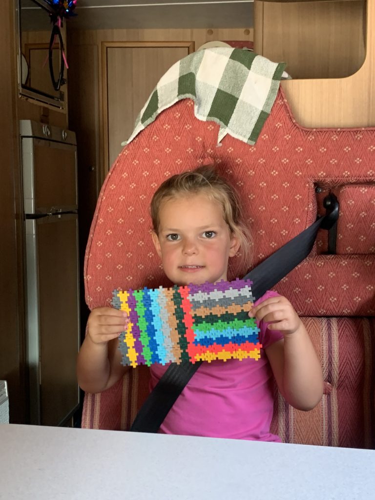 Pour ne pas s’endormir jusqu’au camping, Odile a construit un avion (?!?) en plus-plus.