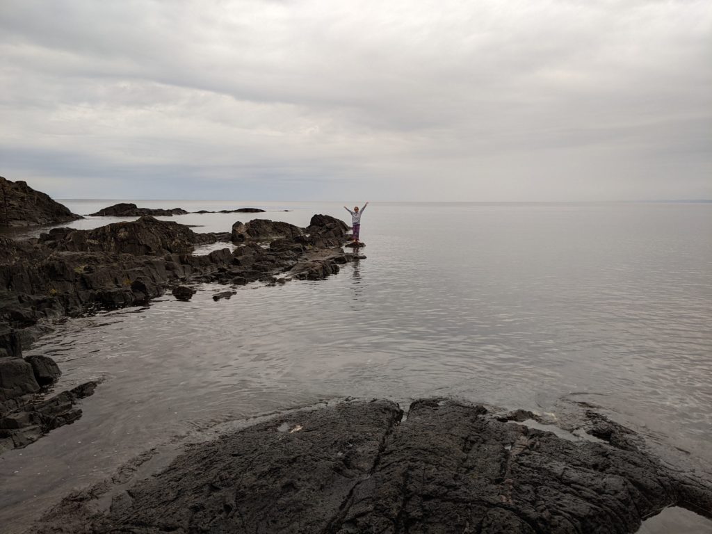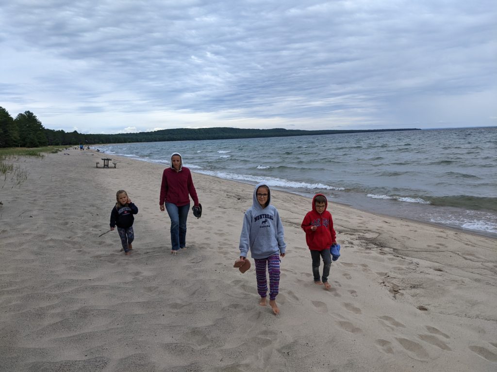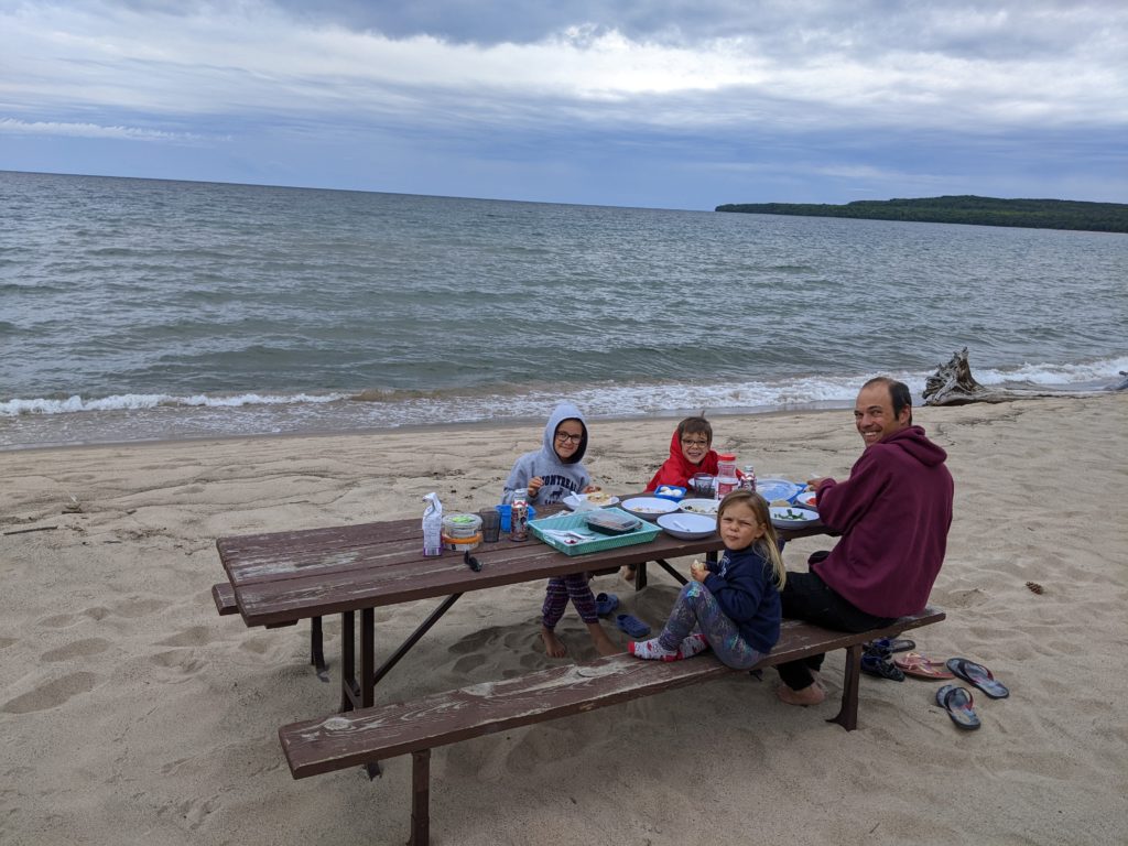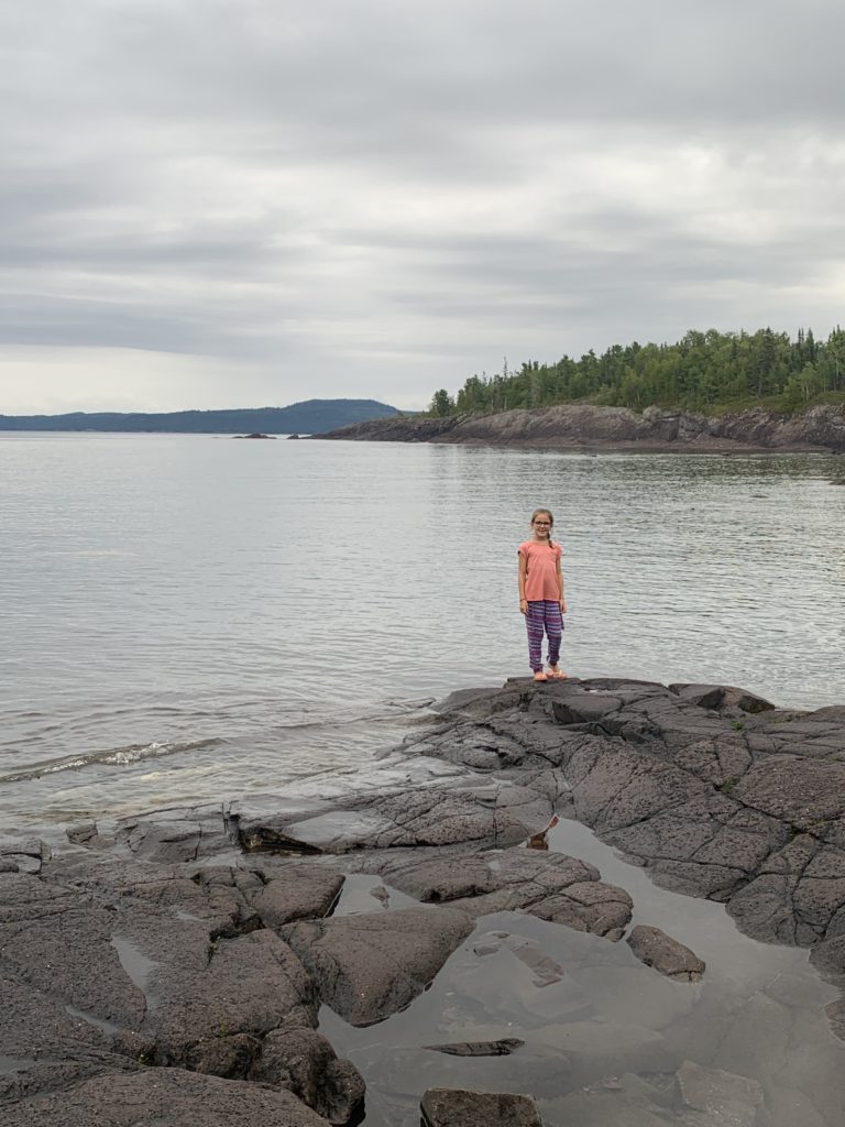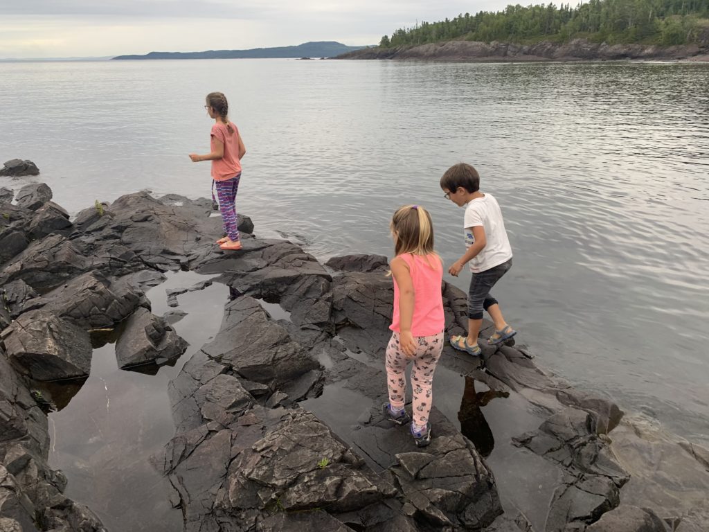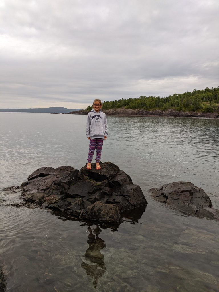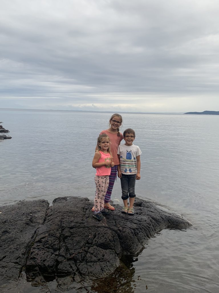 Nous avons ensuite longé la côte du lac Supérieur jusqu’au parc de Pancake Bay où nous avons passé l’après-midi. Pic-nic à la plage, puis activité autour des insectes. Les enfants ont bien aimé les capturer, malgré la pluie !