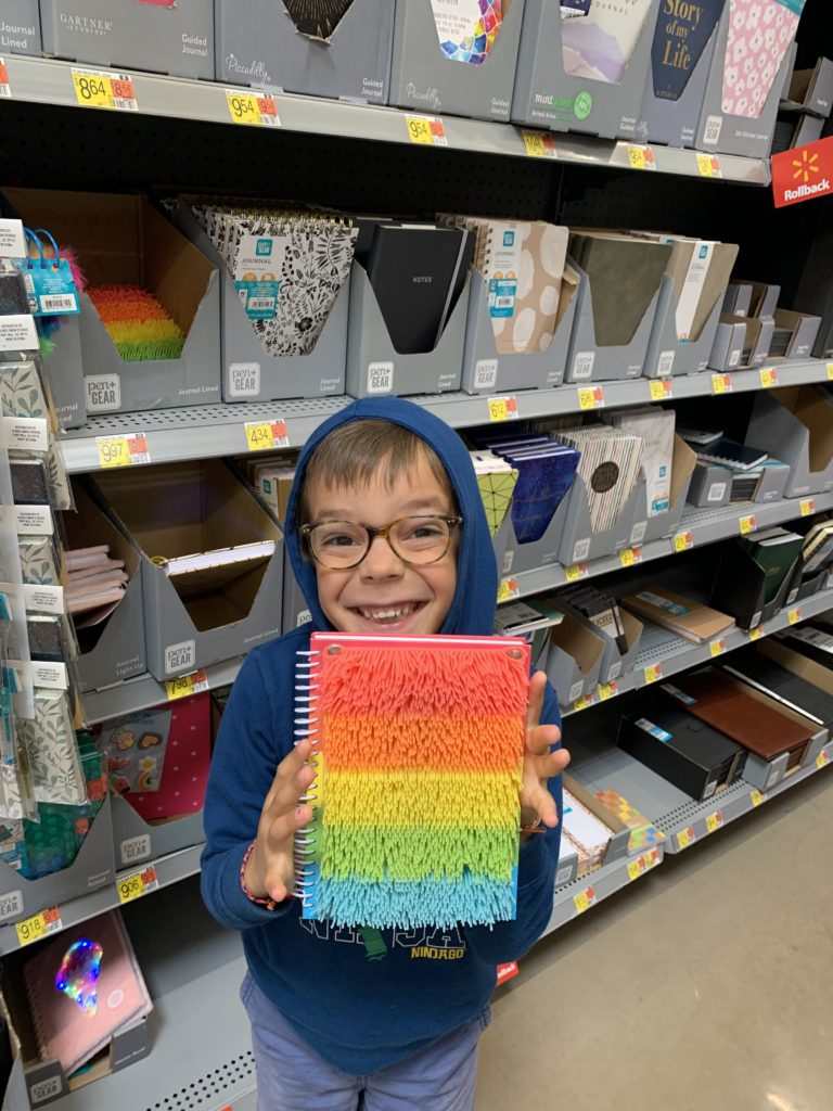 Avant de quitter les États-Unis, nous avons fait quelques courses à Walmart. Les enfants ont particulièrement aimé le rayon papeterie 😉