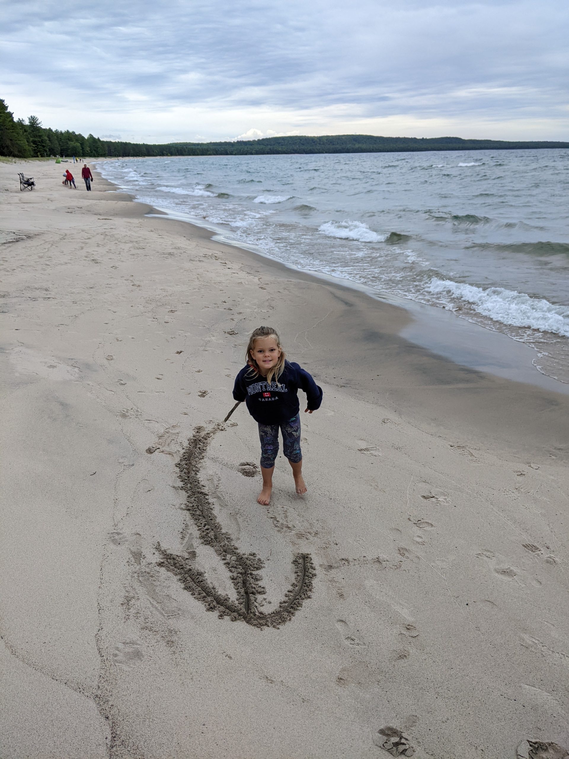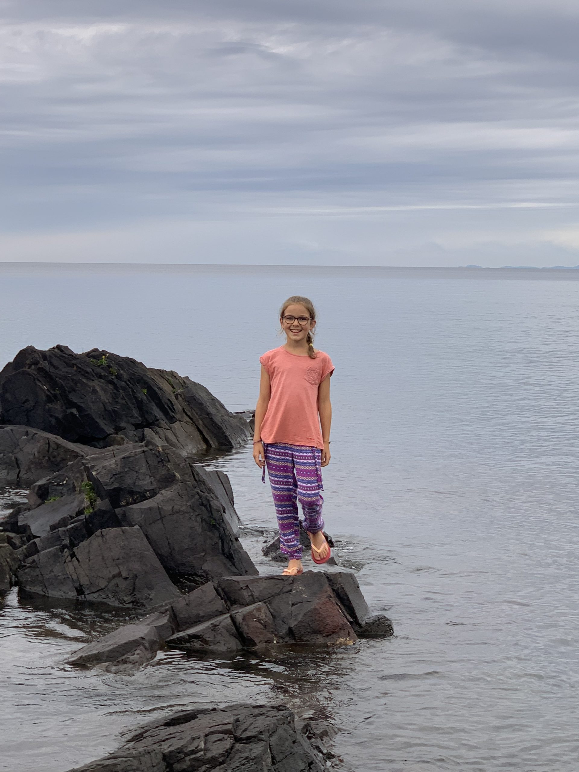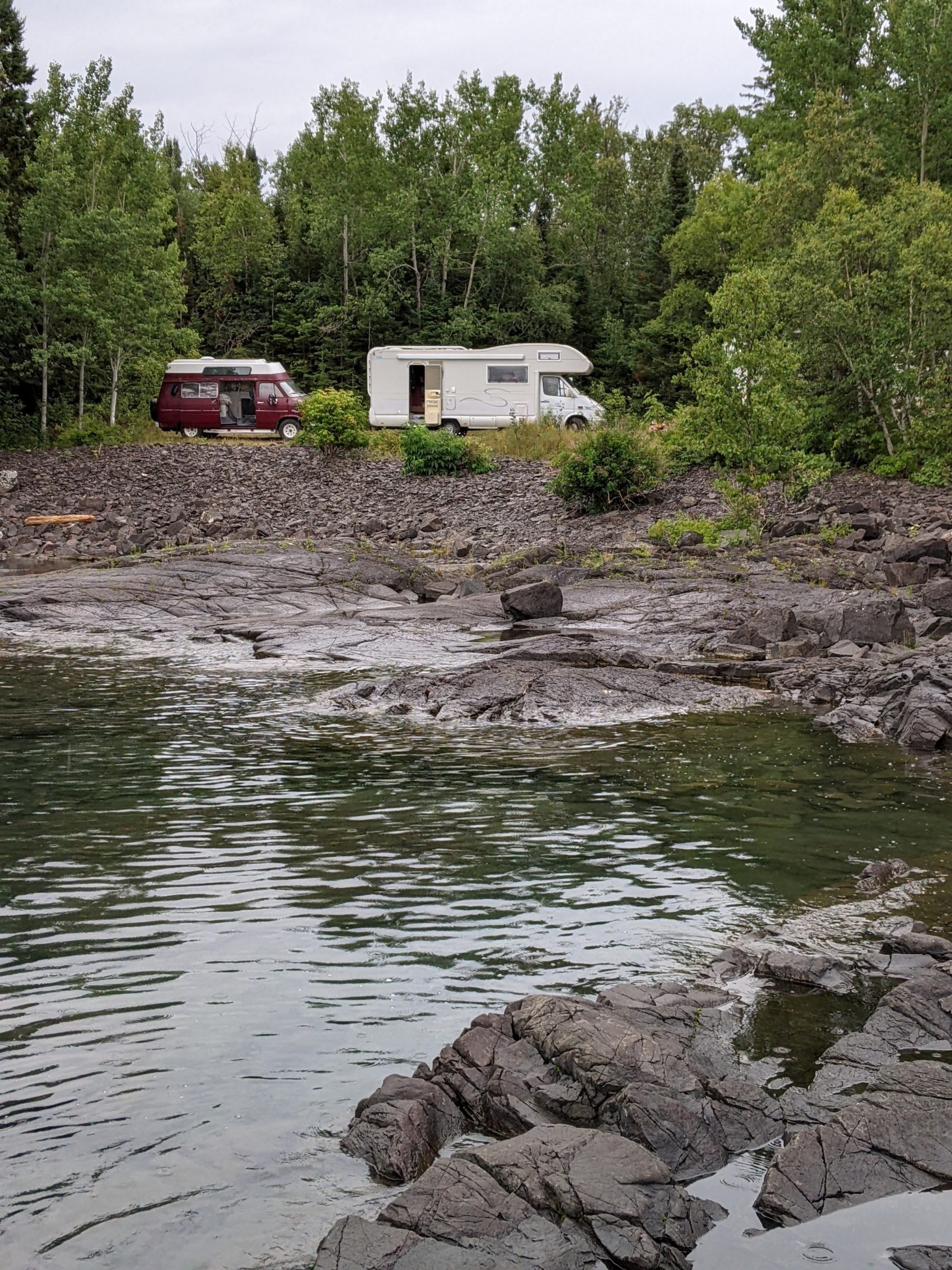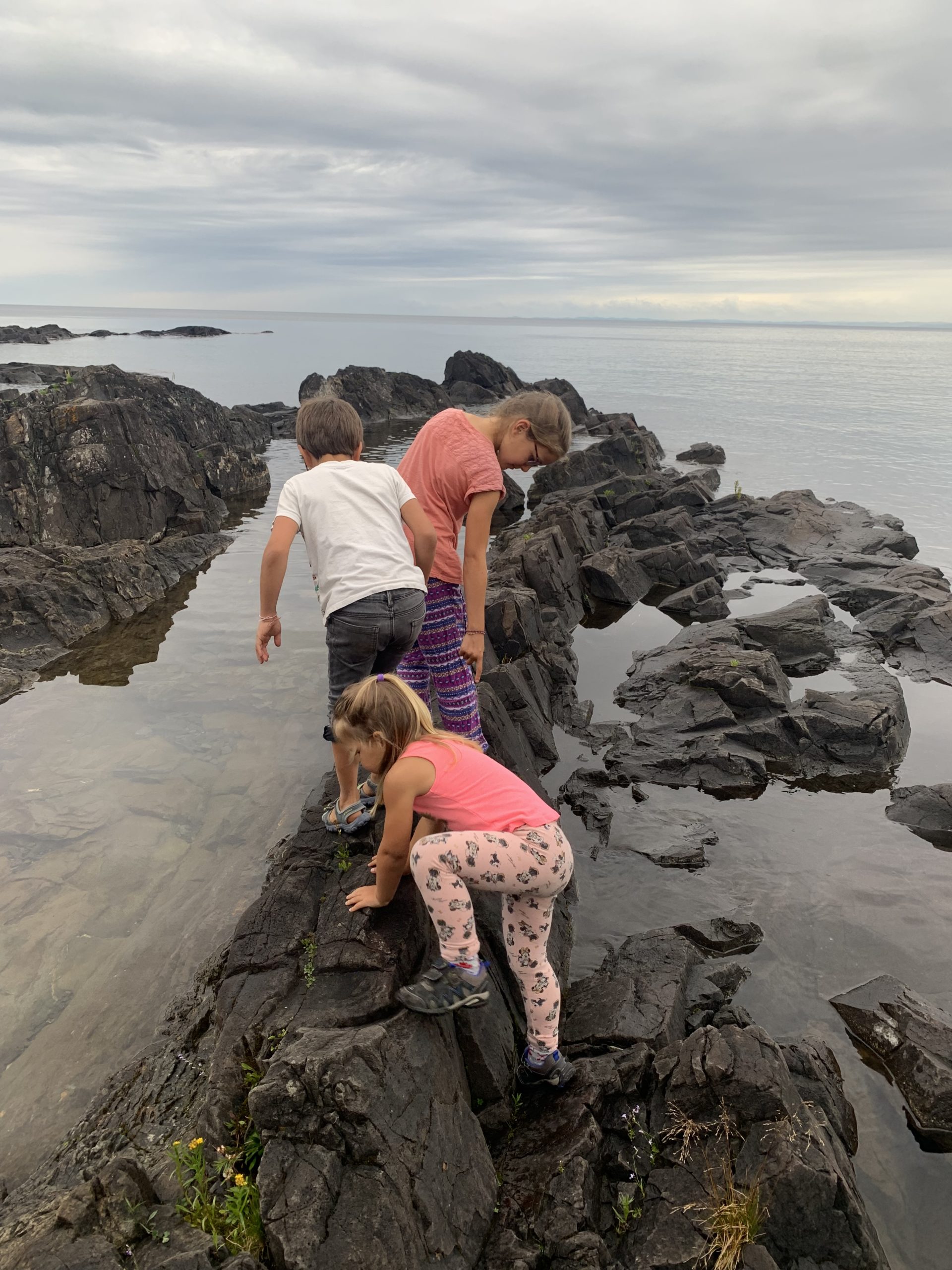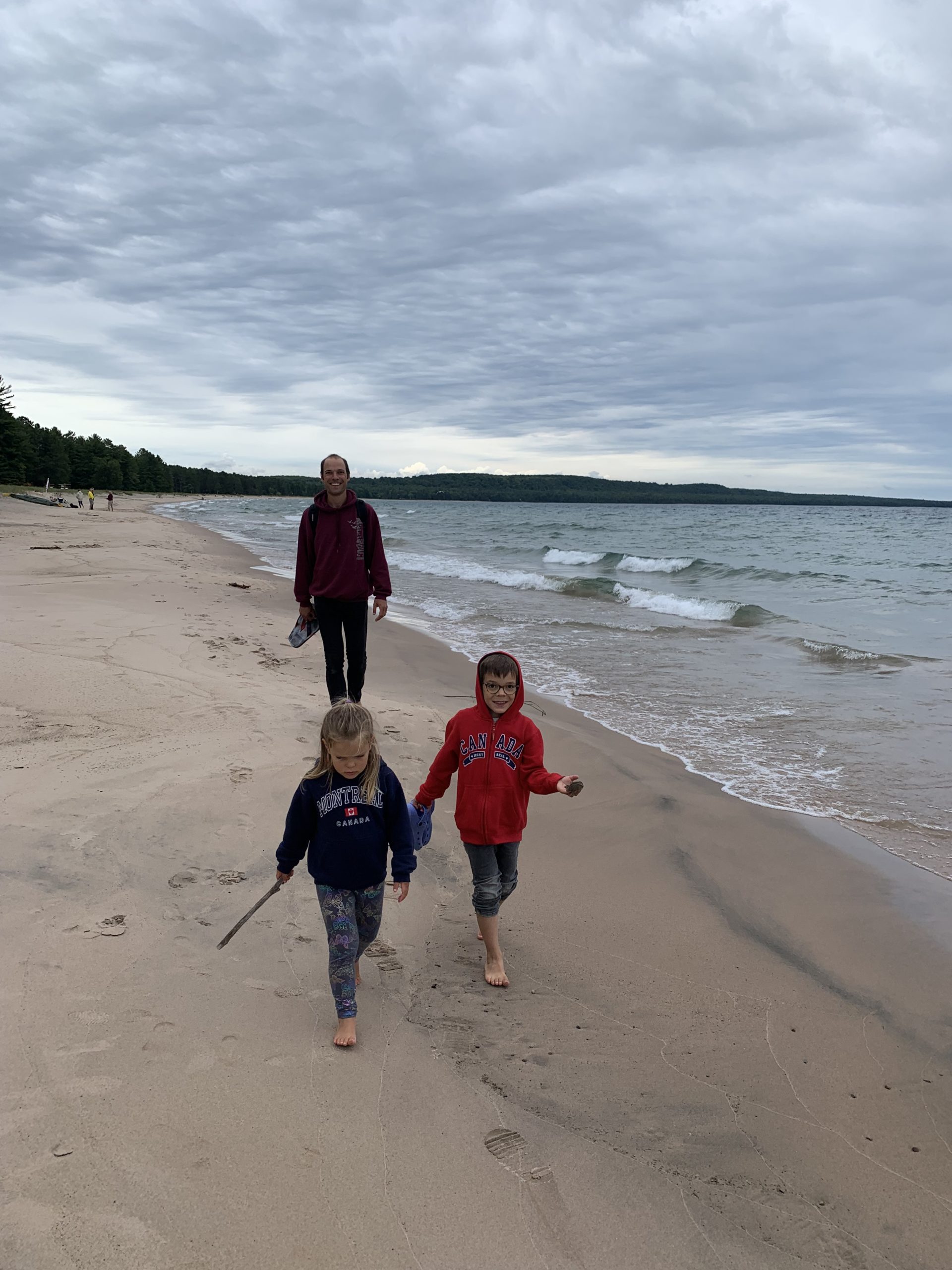 Nous avons ensuite longé la côte du lac Supérieur jusqu’au parc de Pancake Bay où nous avons passé l’après-midi. Pic-nic à la plage, puis activité autour des insectes. Les enfants ont bien aimé les capturer, malgré la pluie !