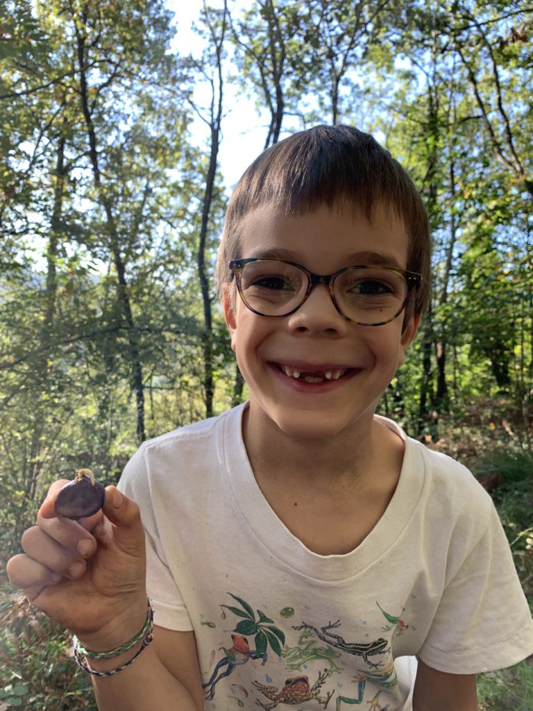 Nous avons ramassé, et mangé, des châtaignes, Émile adoooore ça !