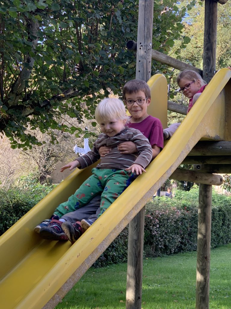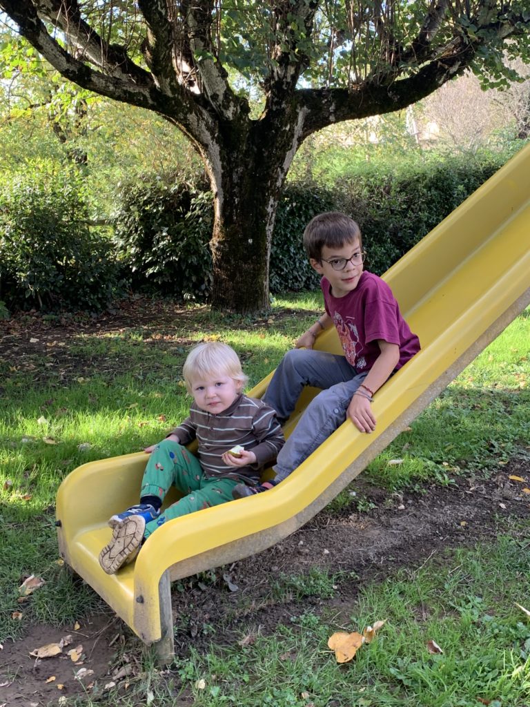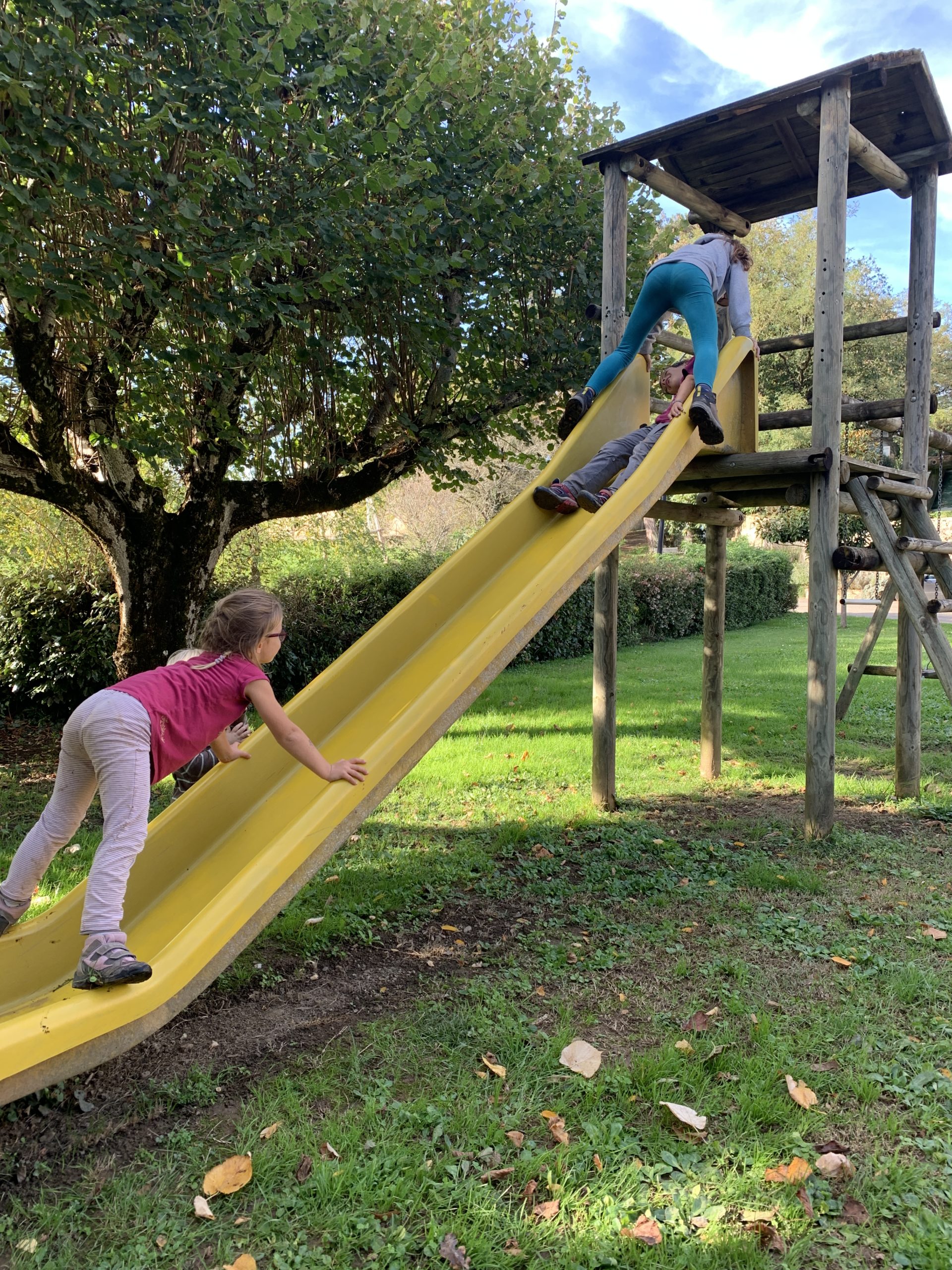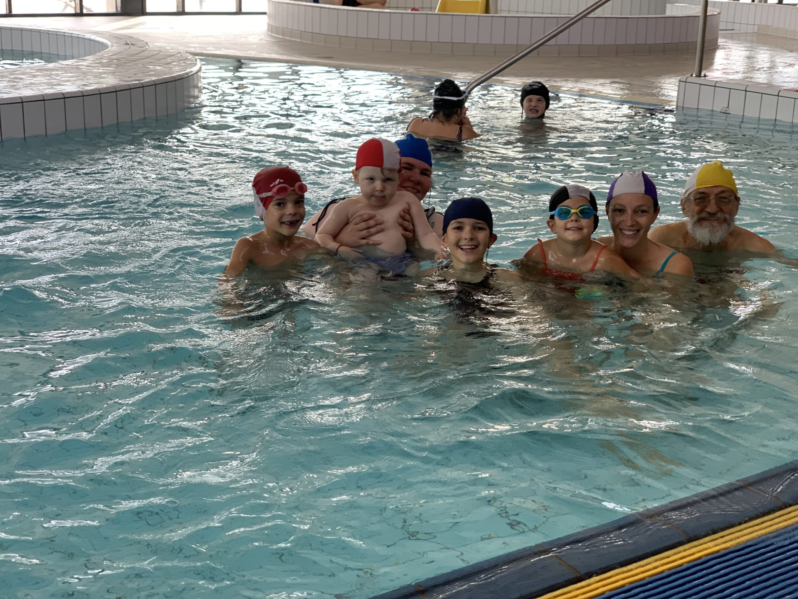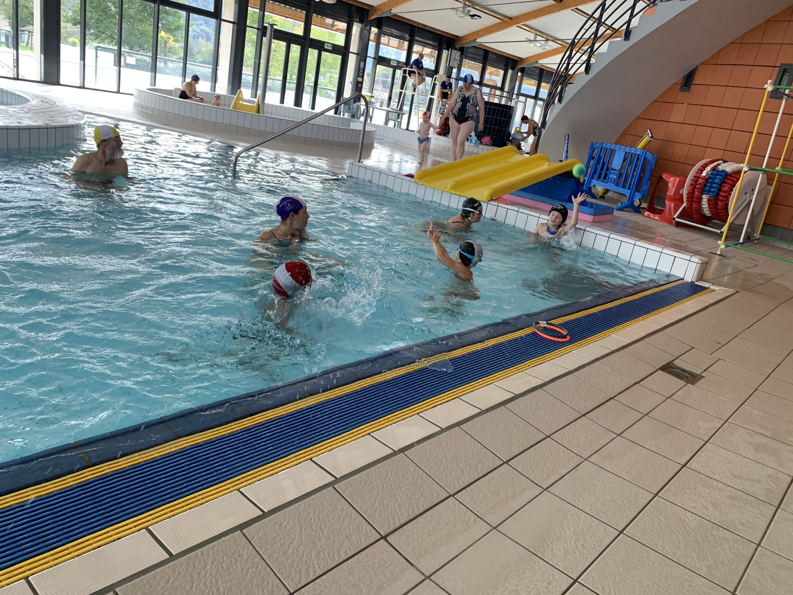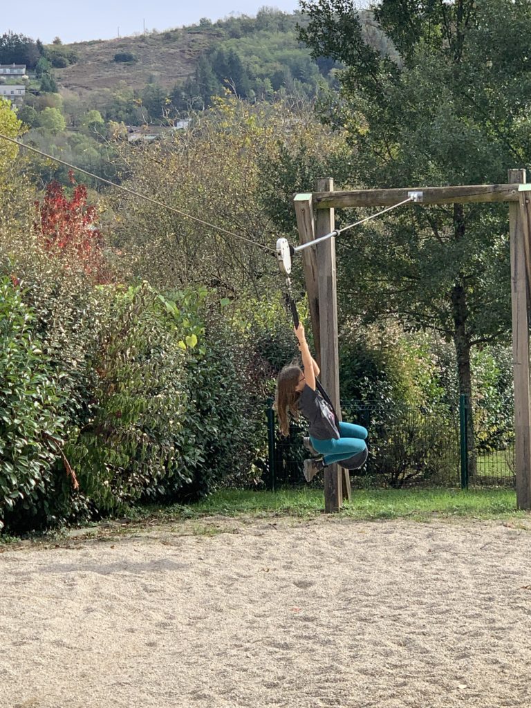 Nous avons été à la piscine de Villefranche de Rouergue. Les enfants se sont bien amusés, sauf Léonard qui n’a pas pu rester longtemps, car l’eau n’était pas si chaude. Nous avons ensuite pique-niqué à une aire de jeux avec tyrolienne !