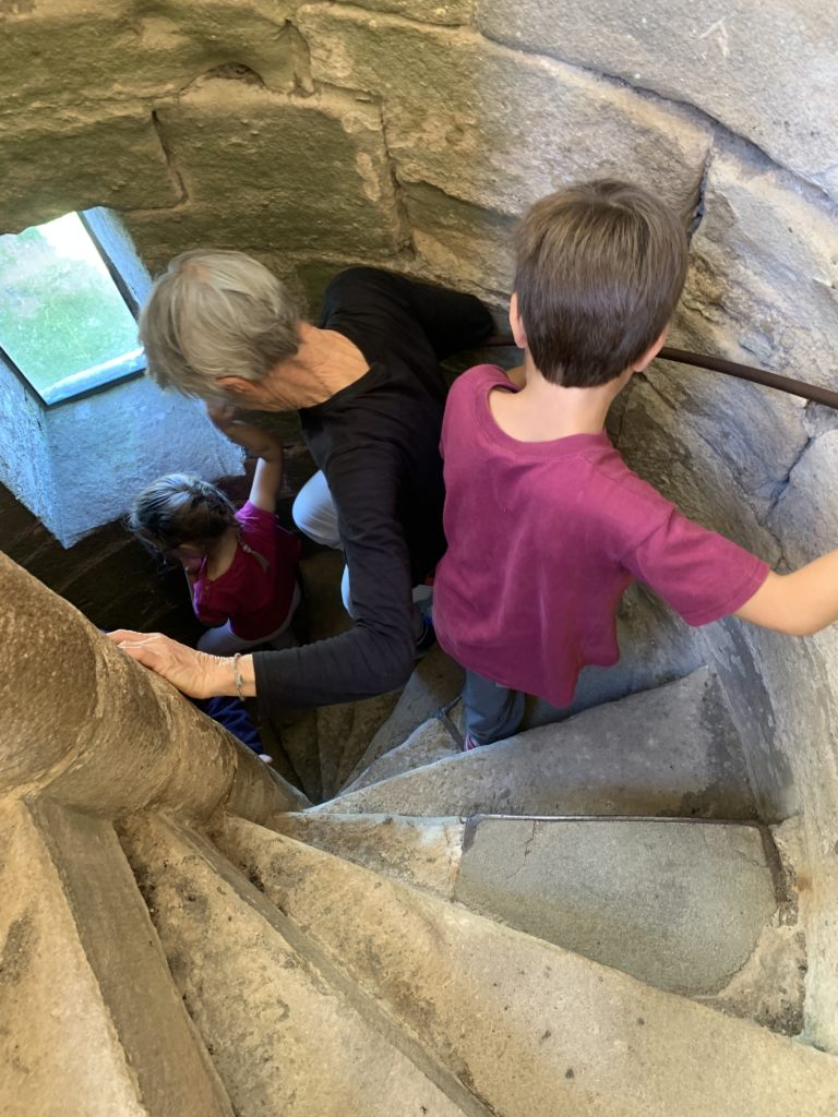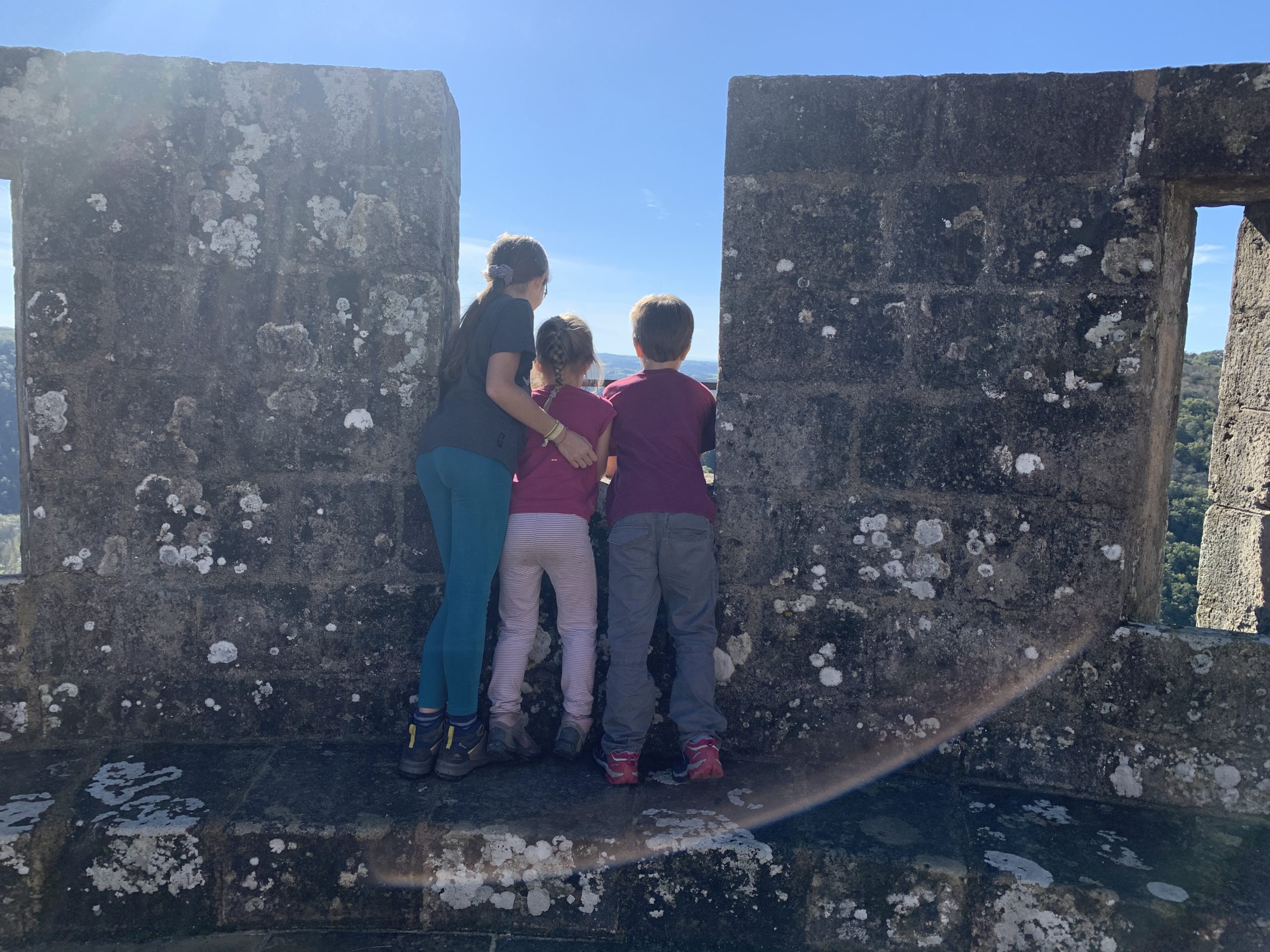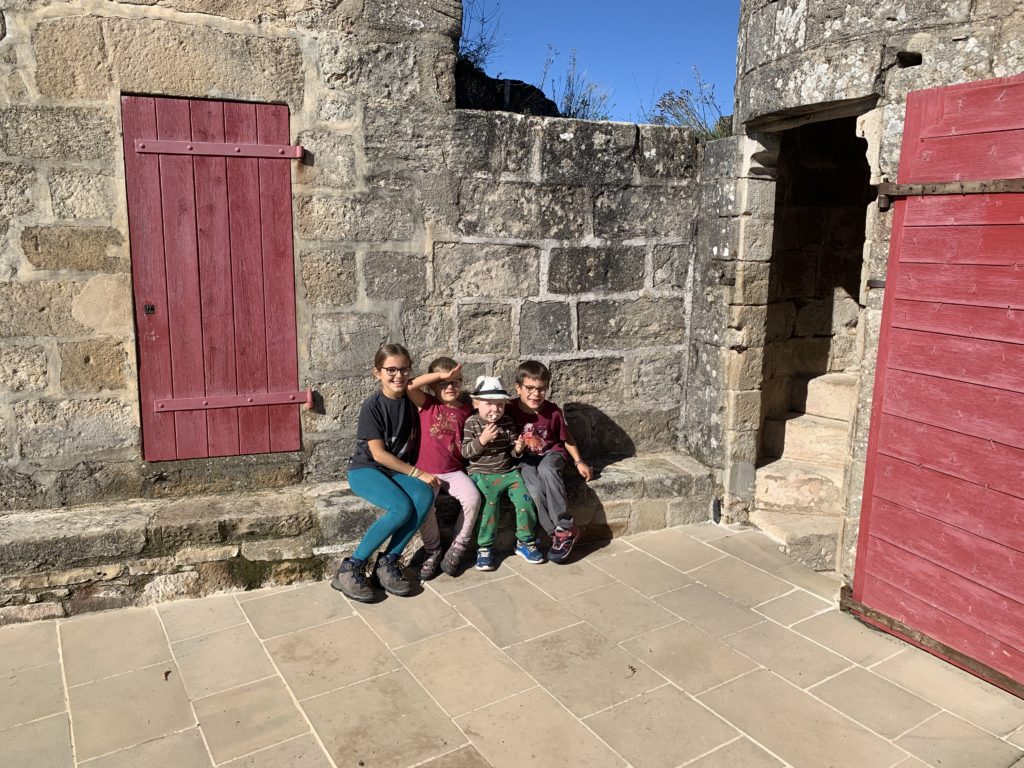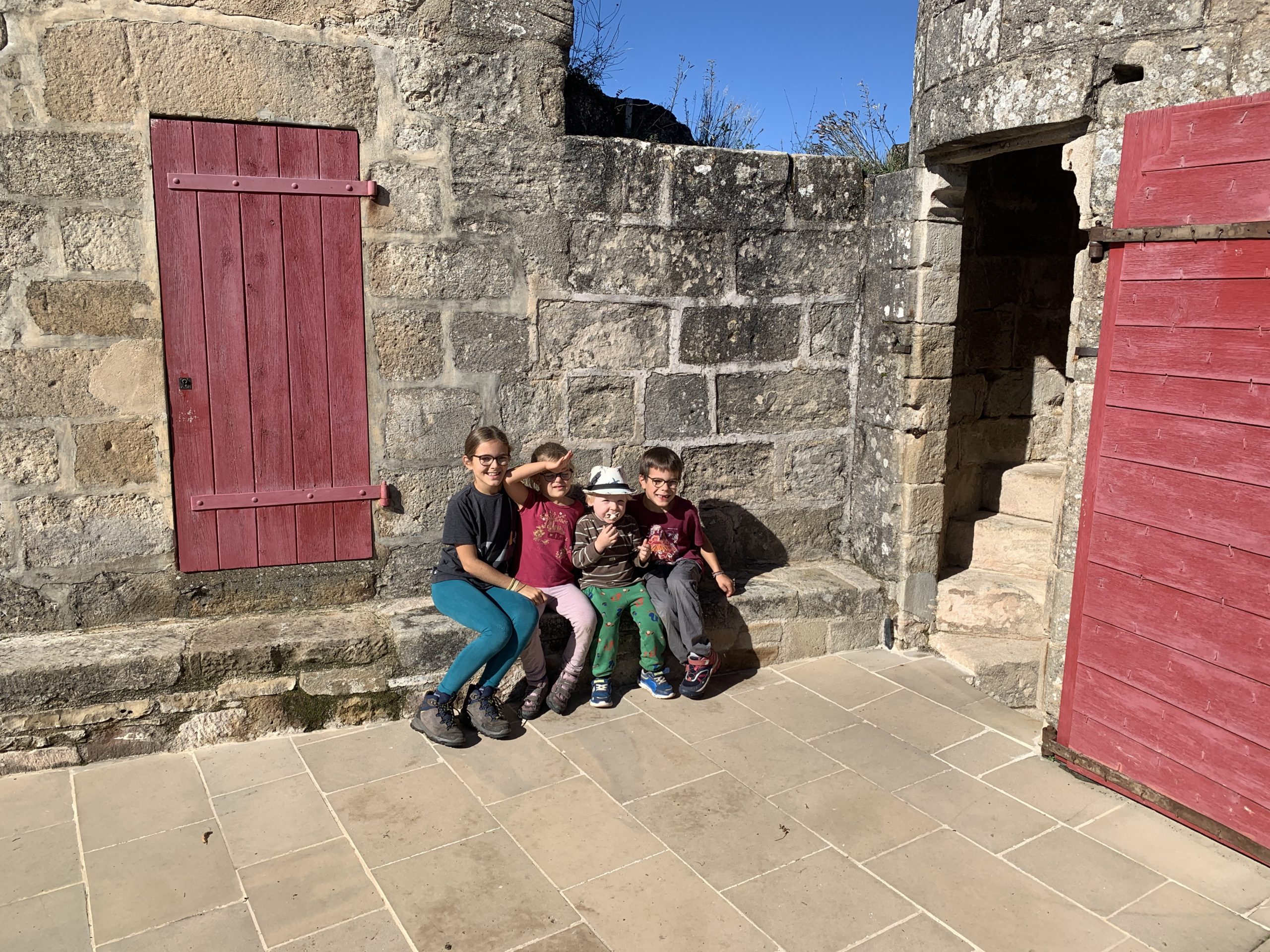 Visite du château de Najac. Les plus courageux (pas moi, donc) sont montés au sommet du donjon !