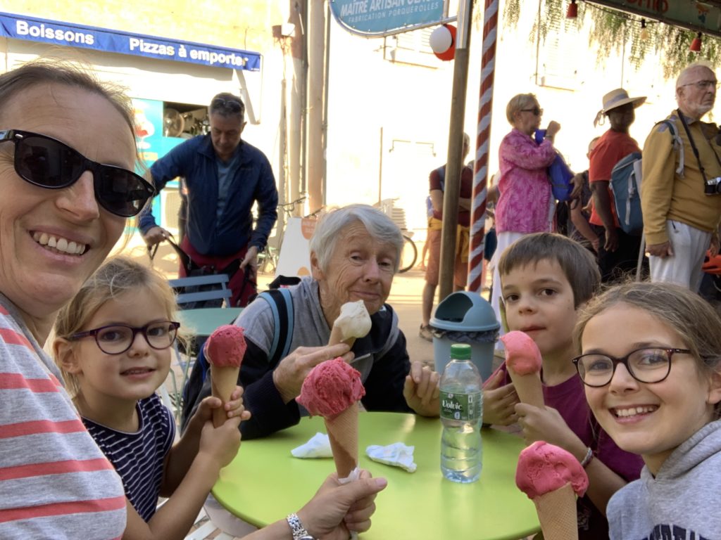 Un dimanche classique de fin de semaine, ménage, plage d’argent, bateau et retour, mais pas sans avoir dégusté une dernière glace. Miam !!