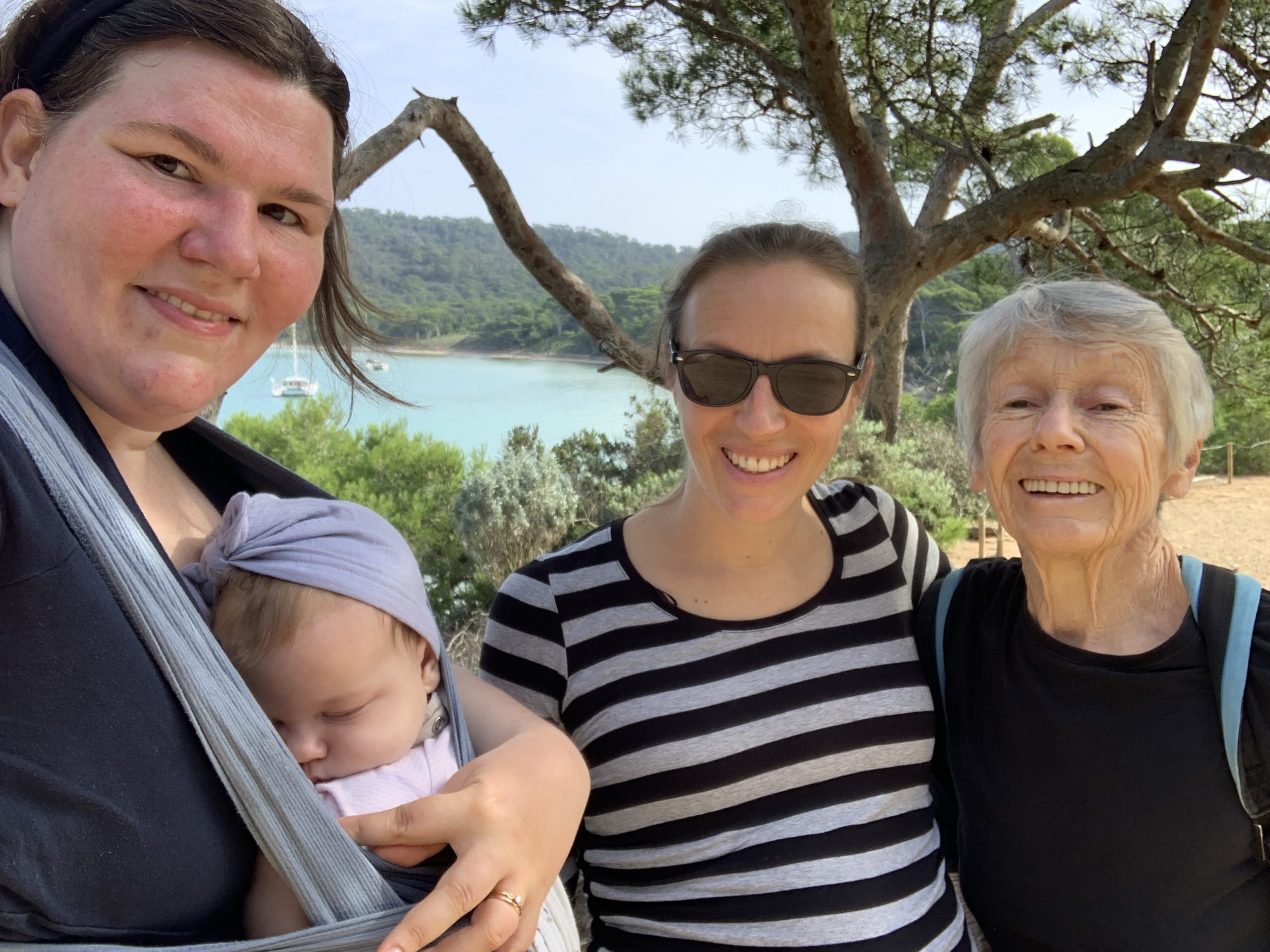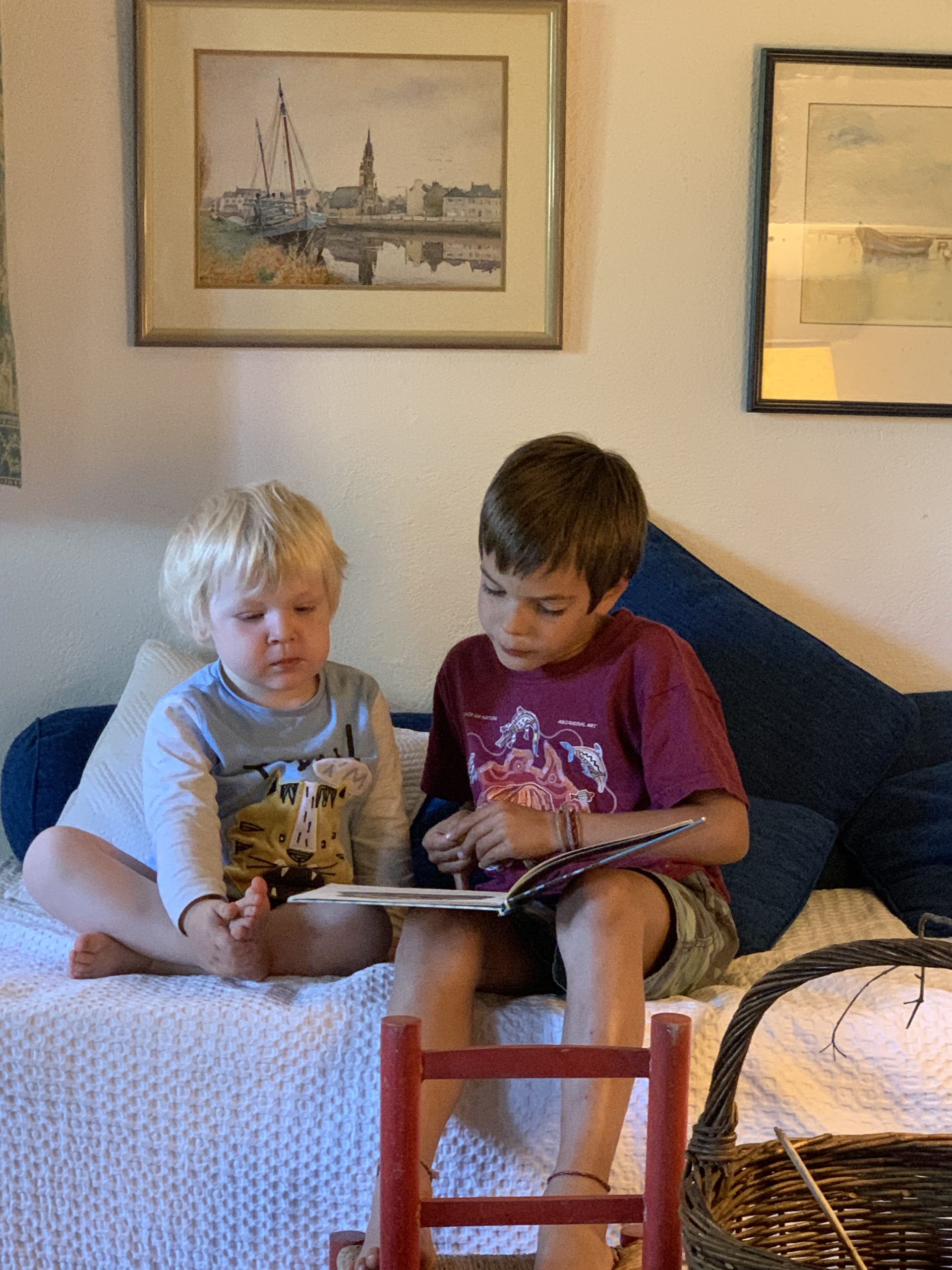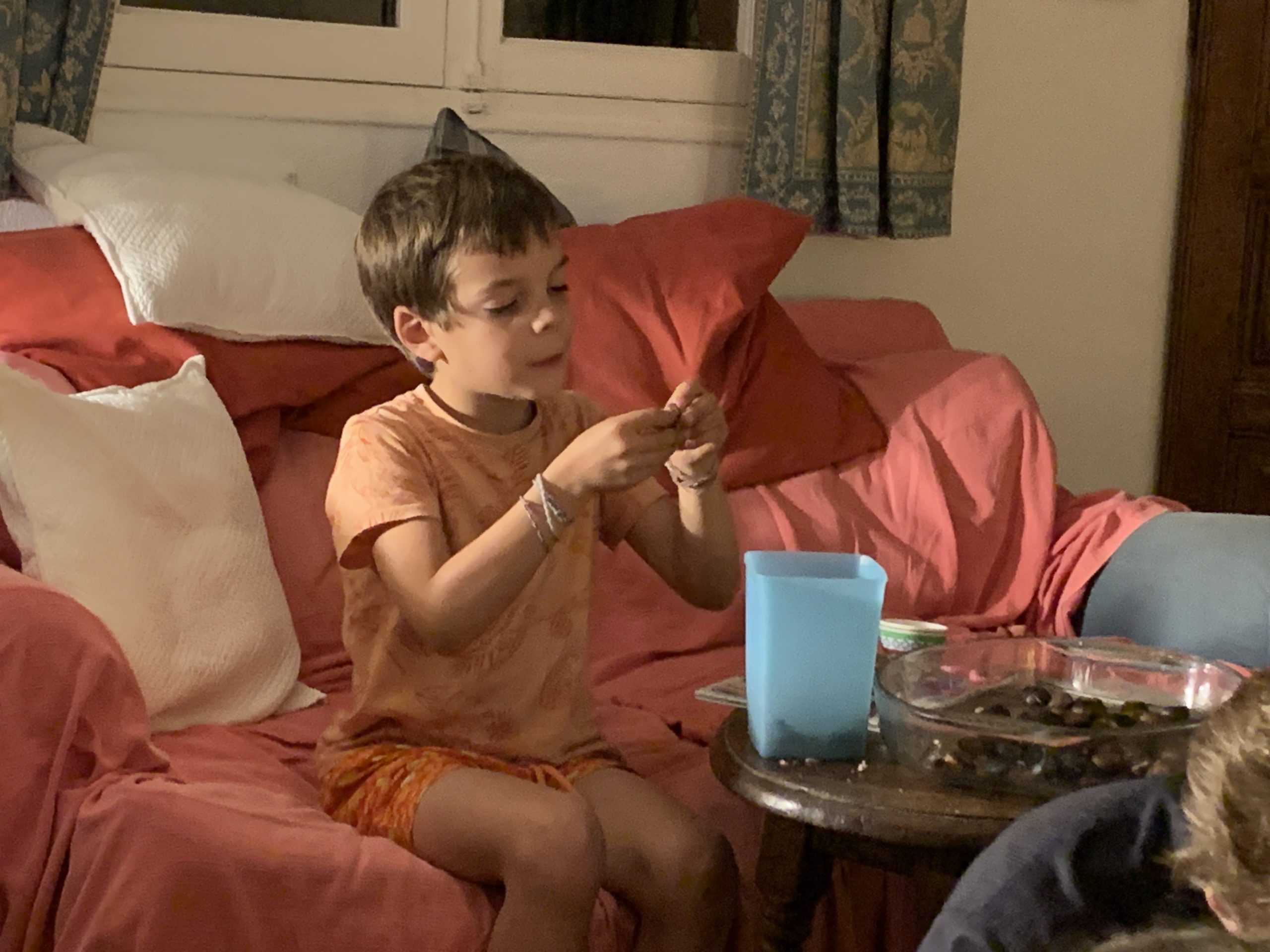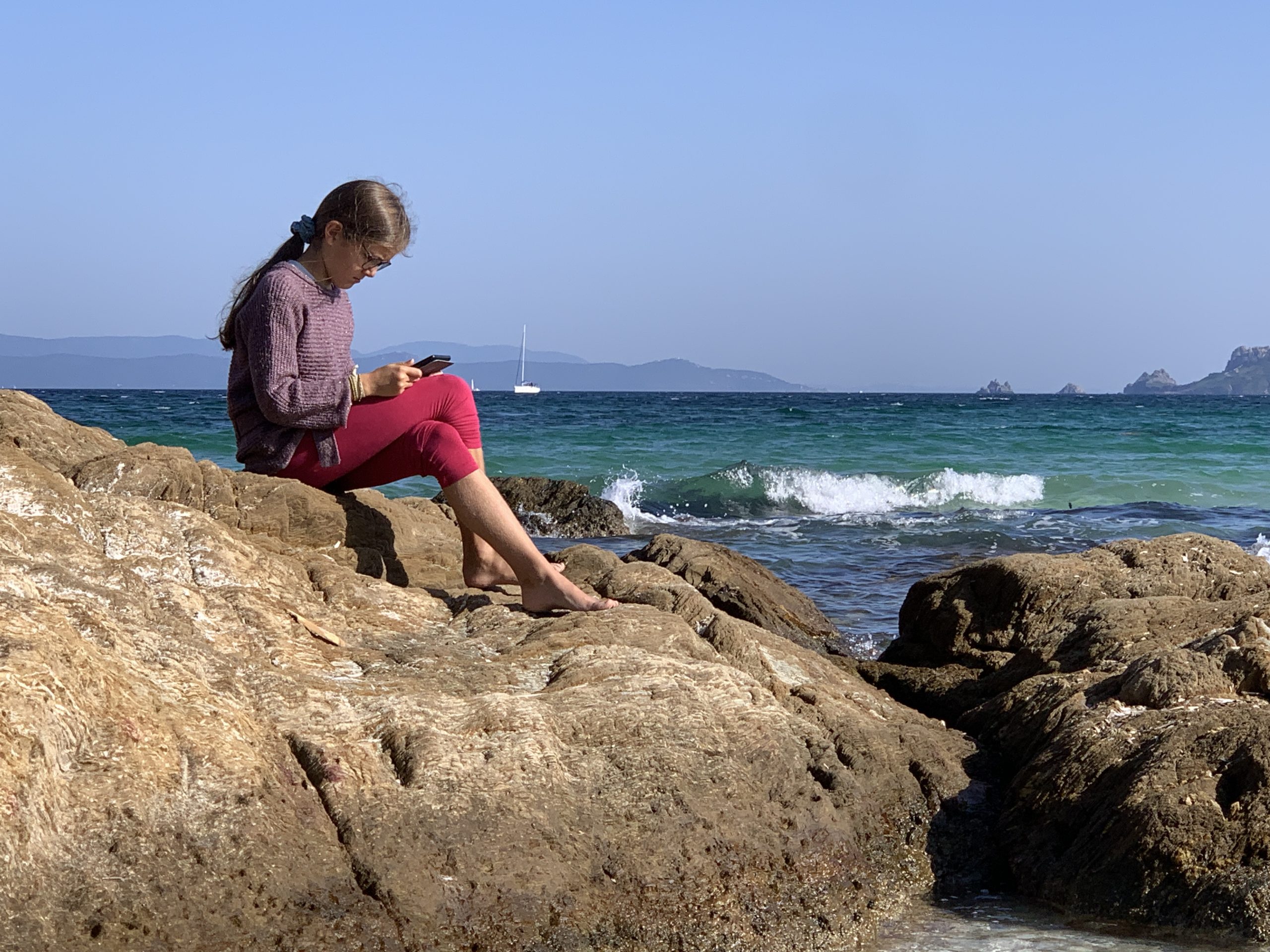 Vendredi, journée d’été à la plage du Langoustier. Lucie et Émile ont pédalé, Odile n’était pas en forme et Thomas l’a prise sur son vélo, tandis que Théodore était sur le vélo d’Arthur. Je suis restée à la maison, je ne me suis pas sentie de marcher autant. Victor est reparti aujourd’hui.