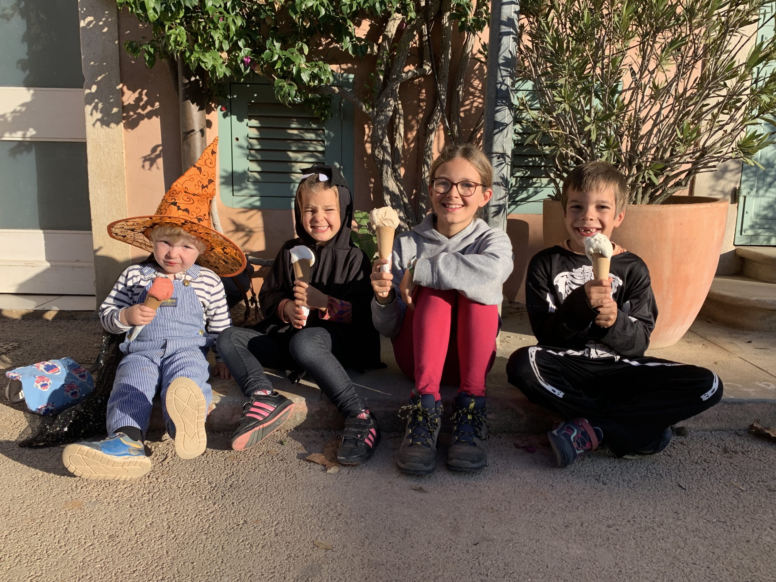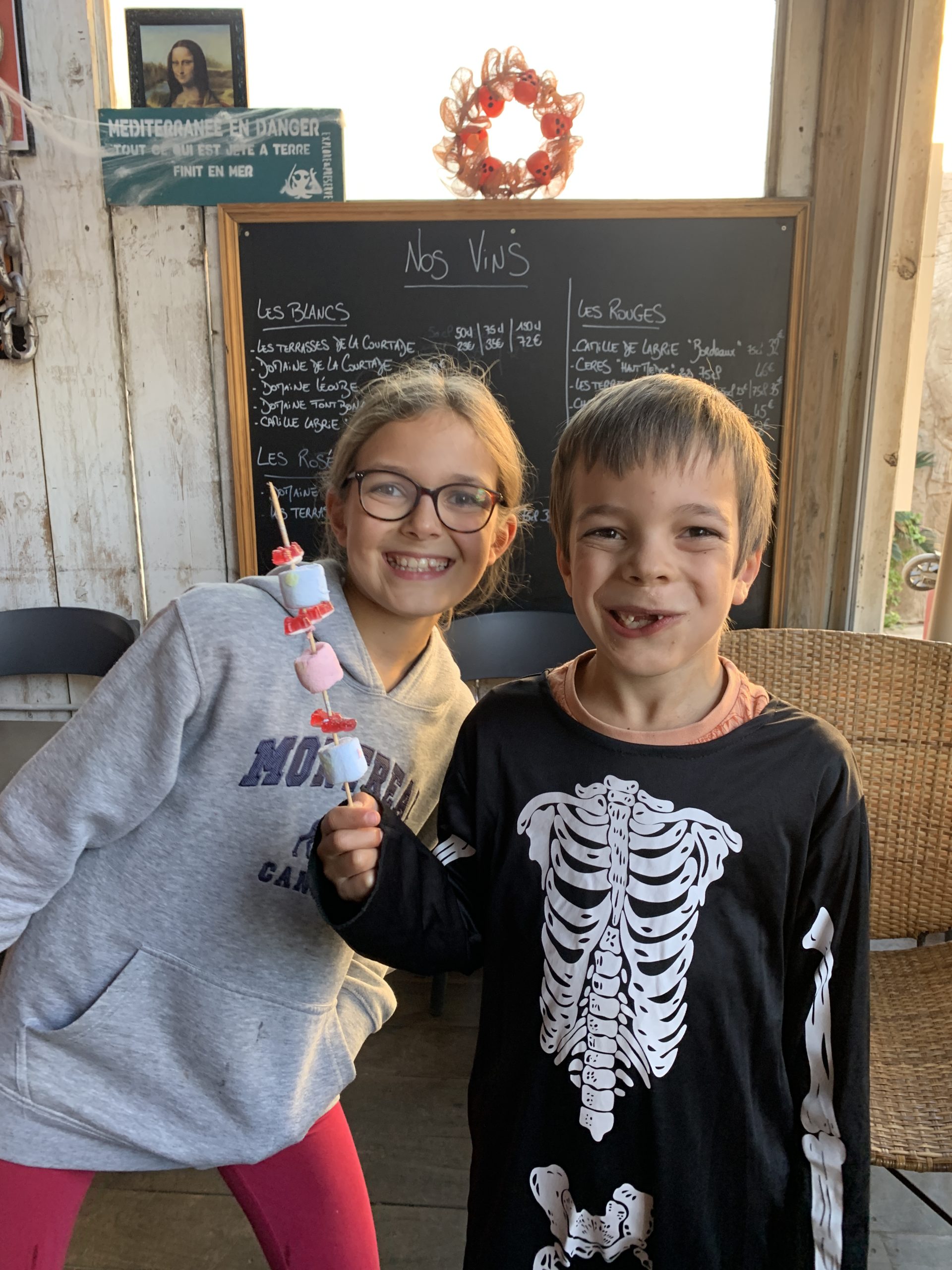 Jeudi, plage d’argent, arrivée de Jeanne et Julien, et soirée d’Halloween suivie d’un apéro avec des copains de Jeanne et Victor.