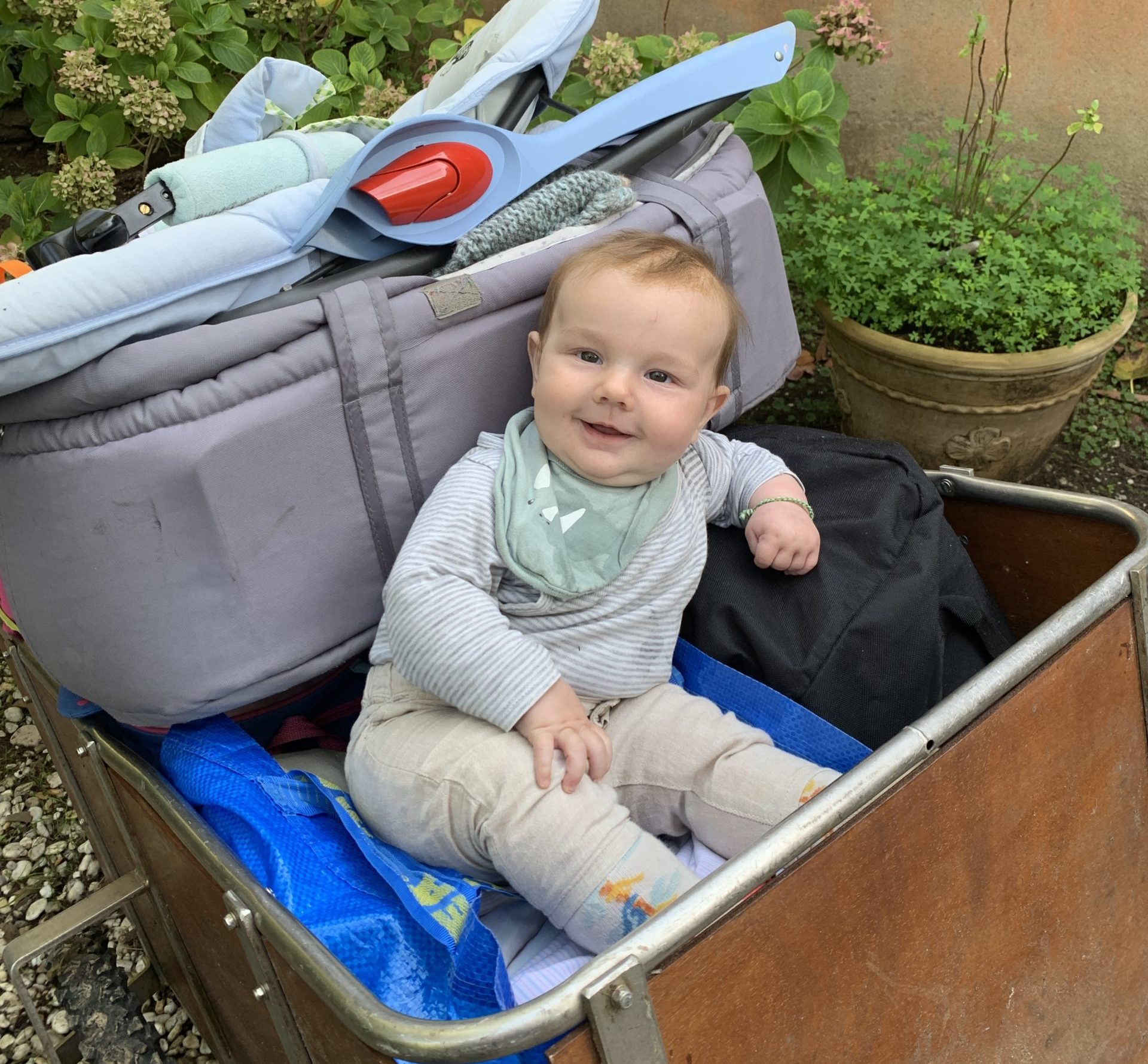 À peine arrivés, Odile trouve déjà une trottinette sur le banc des merveilles 😉 Que Théodore s’empresse d’essayer également.