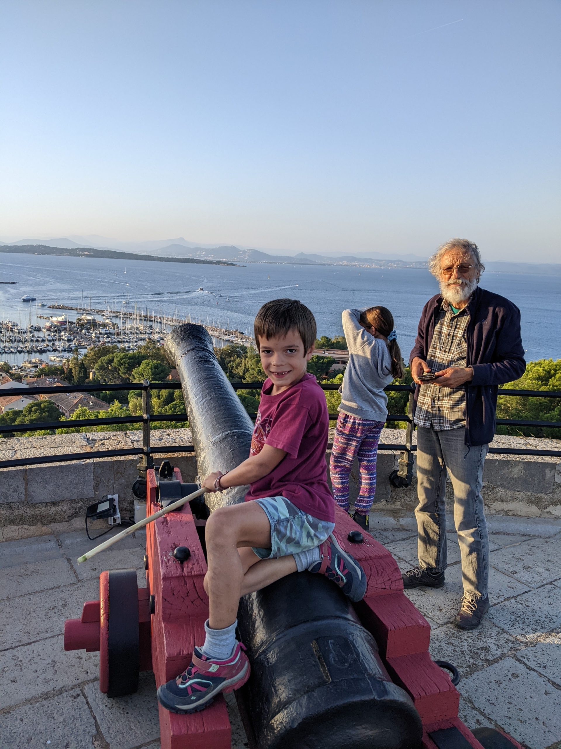 Nous avons à nouveau profité de la plage d’argent samedi. Nous avons à nouveau tenté la draisienne pour Théodore sans beaucoup plus de succès. Jeanne et Julien sont repartis après le déjeuner. Thomas, Lucie et Émile ont visité le fort Saint Agathe en fin de journée avec Grand-papa. Odile y avait été jeudi matin avec tata Agathe et Grand-maman.