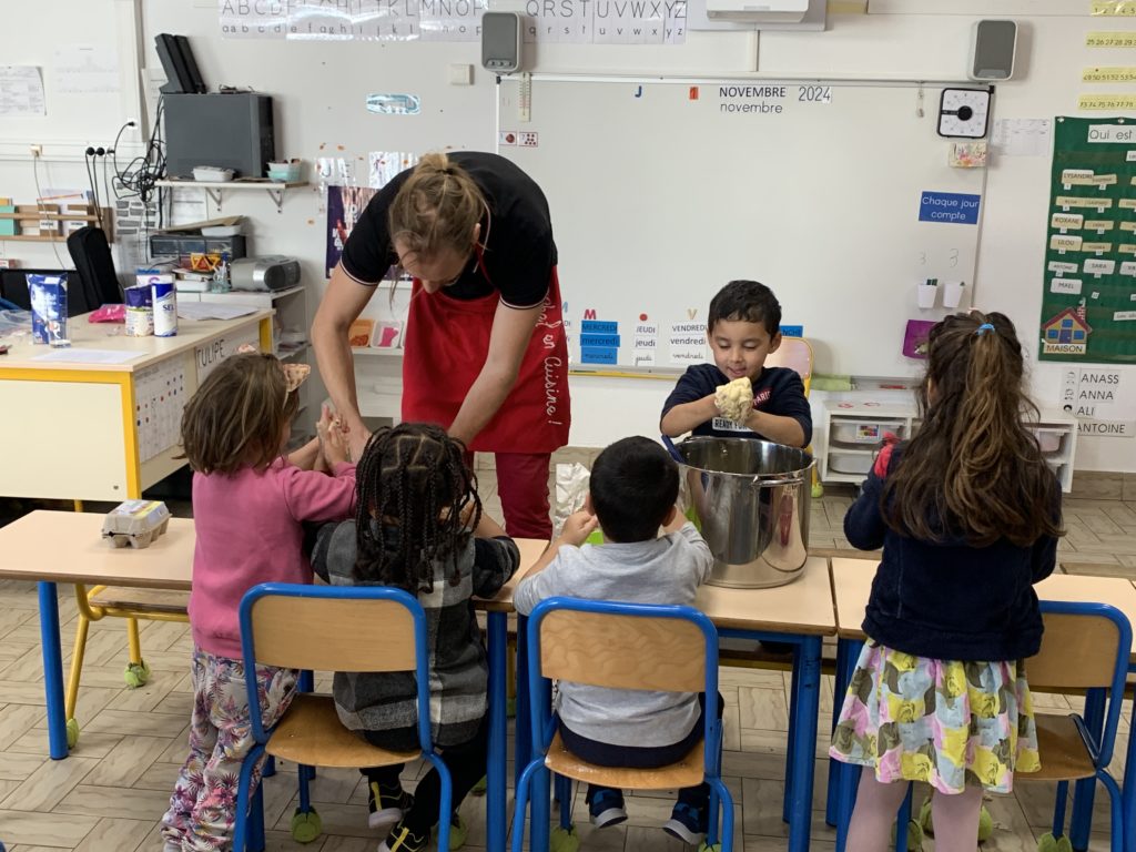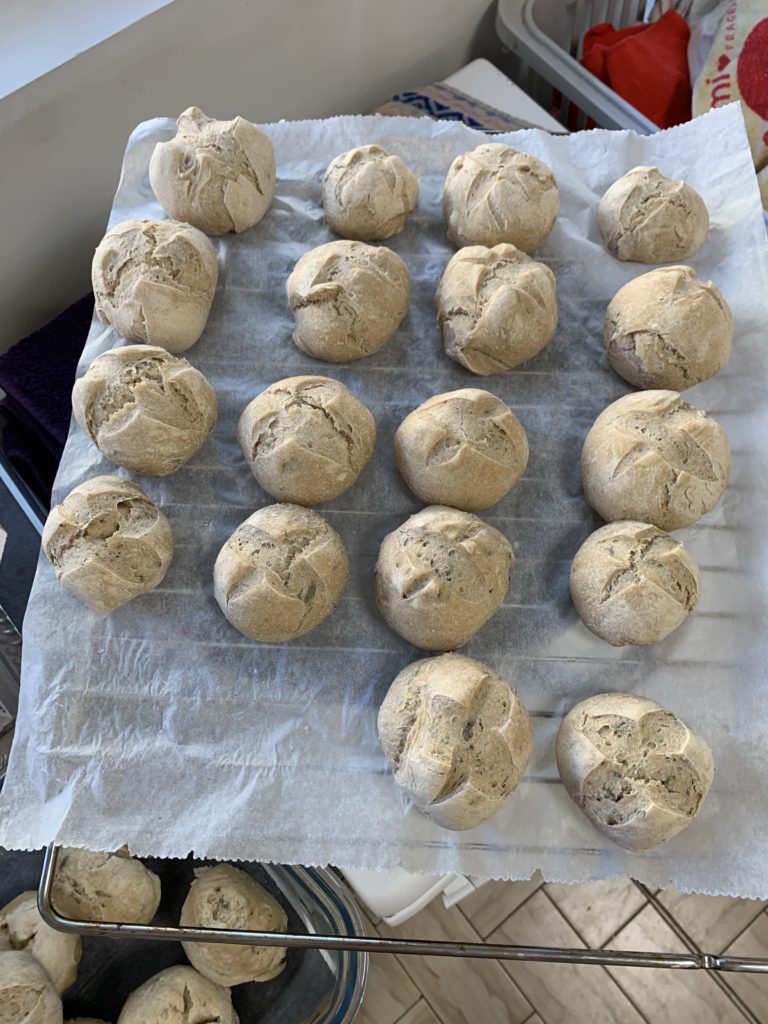 Aujourd’hui, Odile a cuisiné du pain, des petits pains au lait et de la brioche avec son maître Yohann. Je suis allée donner un coup de main le matin, et Mémie est revenue avec moi l’après-midi pour les dernières étapes.
