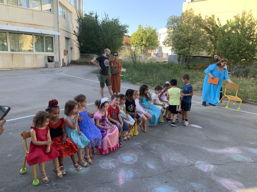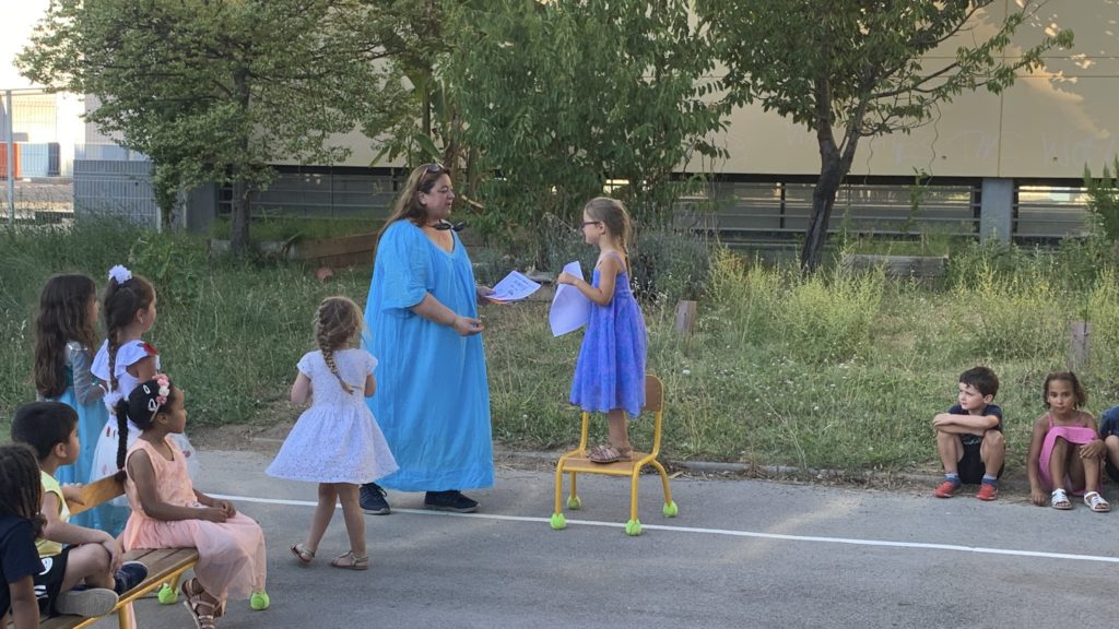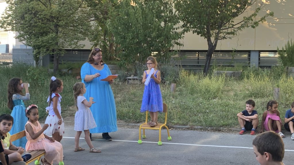 Puis, elle a appelé chaque élève en le décrivant d’abord sans le nommer, avec pour chacun des qualités différentes, pour leur remettre leur diplômes. C’était très chouette. Les enfants se reconnaissaient dans la description, c’était très mignon !