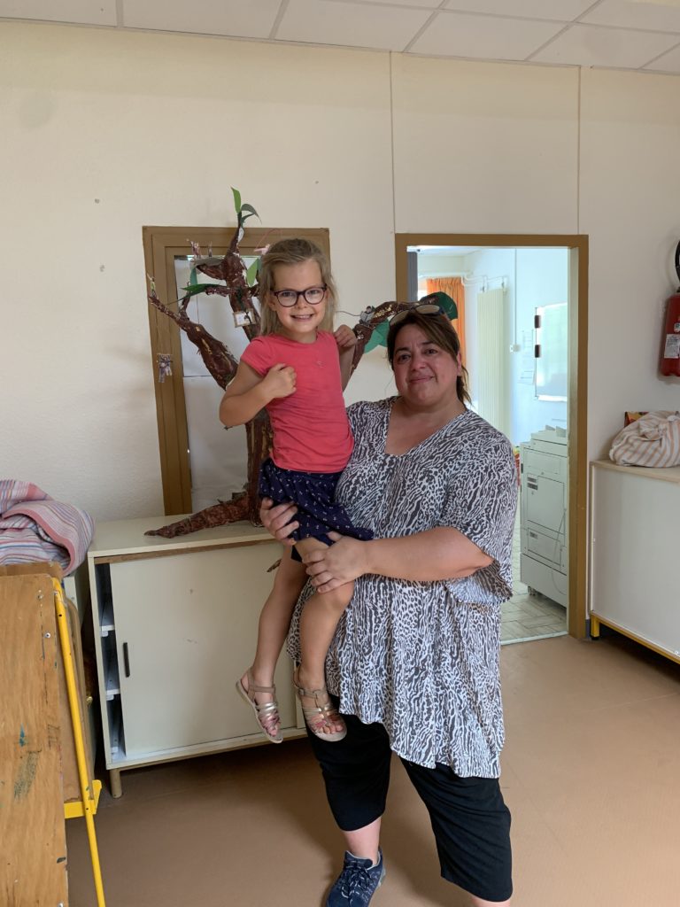 Dernier jour d’école maternelle pour Odile ! Elle y a passé une super année, avec de supers maîtresse, maître et ATSEM. Elle a pu faire ce soir une photo souvenir avec chacun.