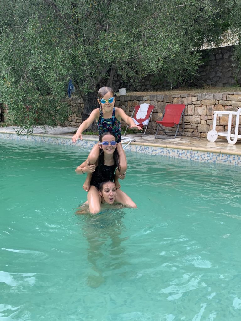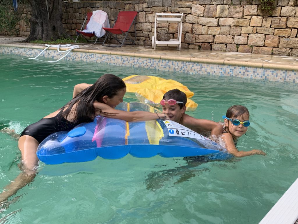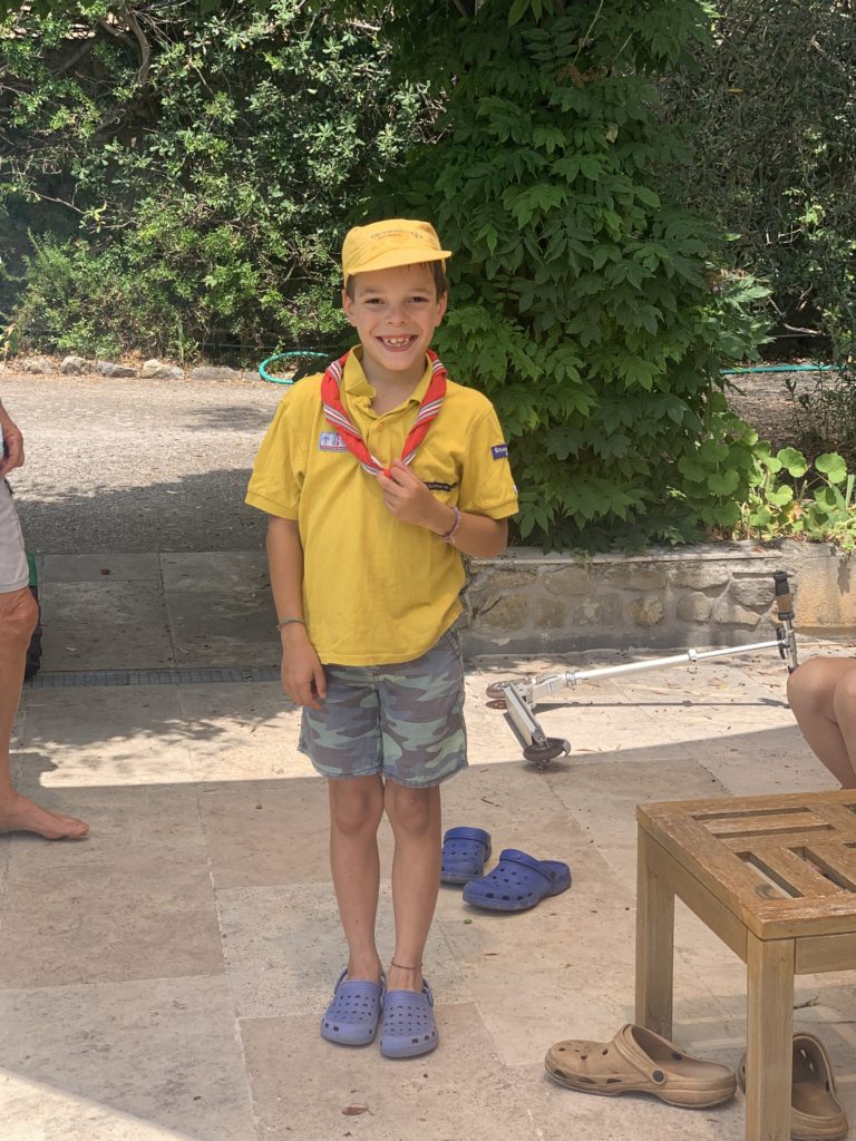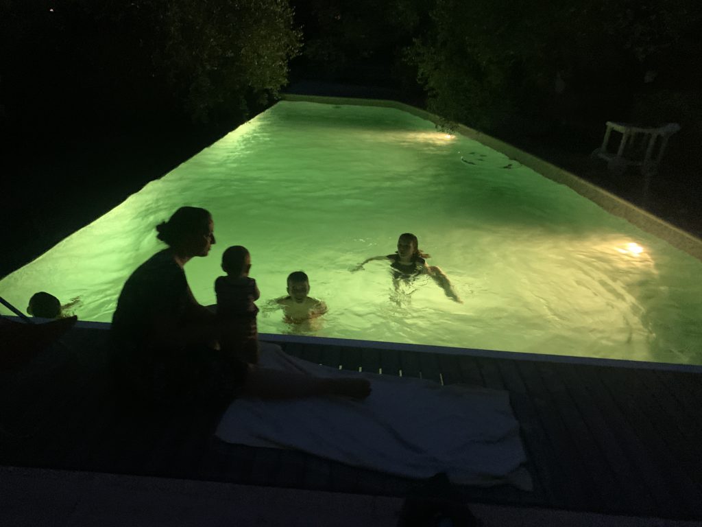 Un chouette week-end tous ensemble à Opio. Nous avons profité de la piscine, de jour et de nuit, fait les derniers préparatifs pour le camp d’éclaireurs à venir d’Émile, et passé une super soirée avec J & J.