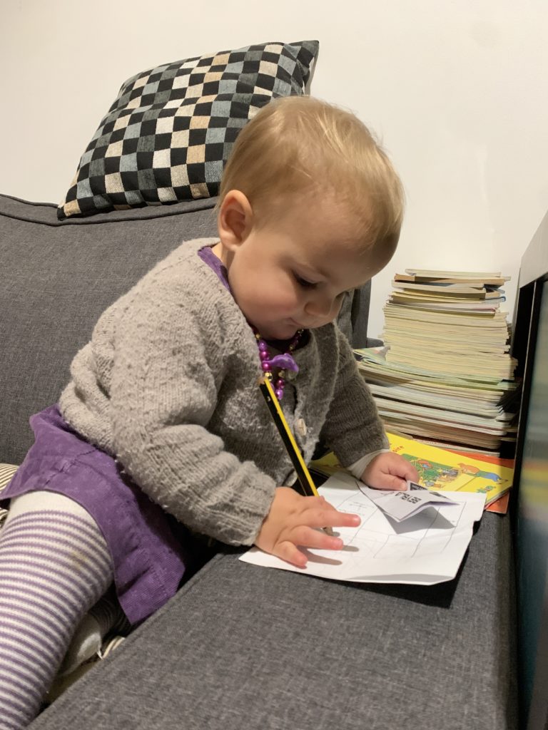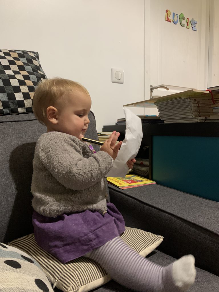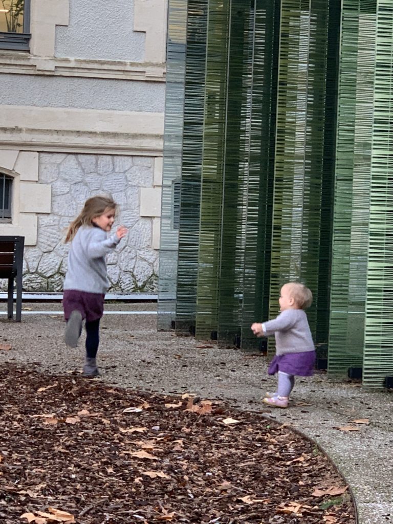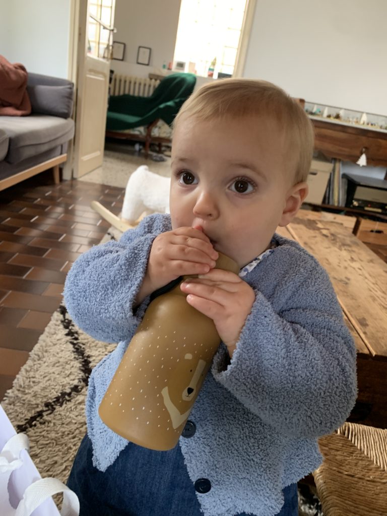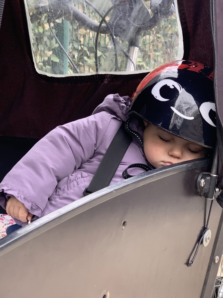 Jeudi nous sommes allées déjeuner chez Adèle, qui a offert à Alice une très belle gourde ours. Elle s’est endormie dans le vélo au retour, et c’est plutôt bien tombé car j’ai déraillé, et j’ai du pousser le vélo jusqu’à la maison !