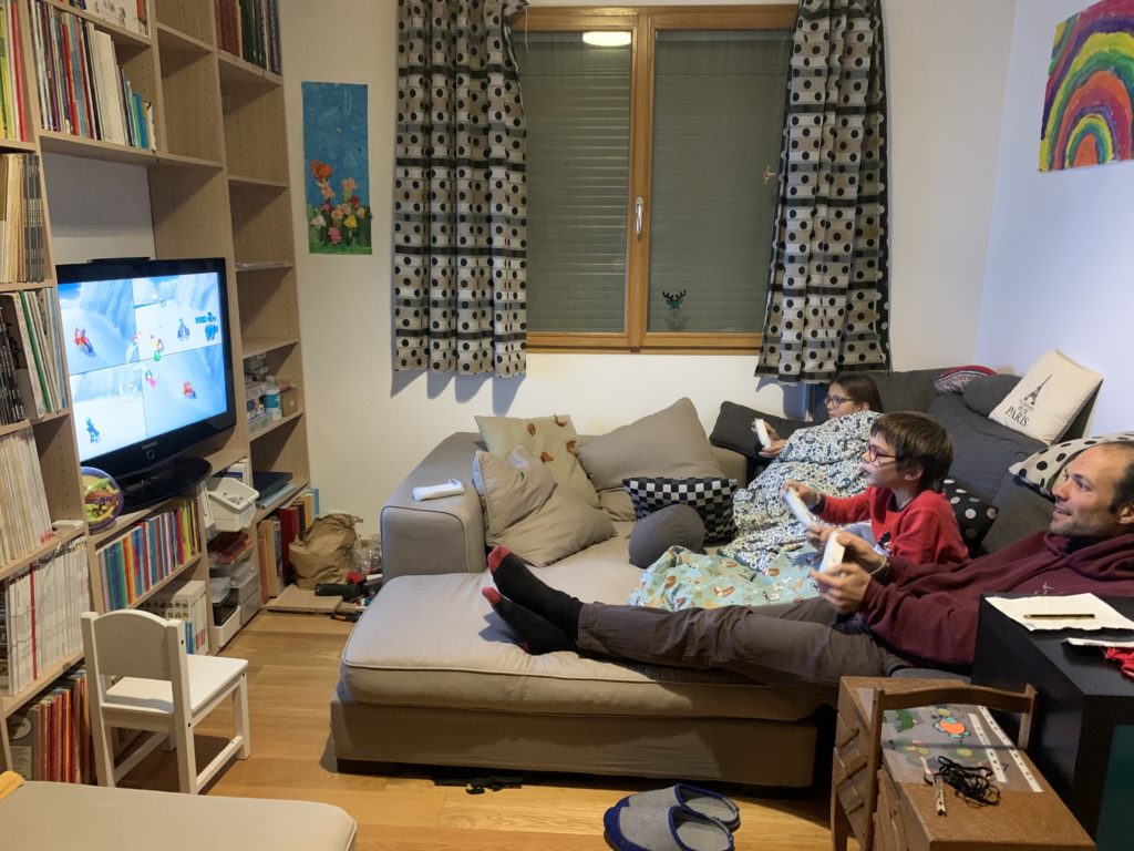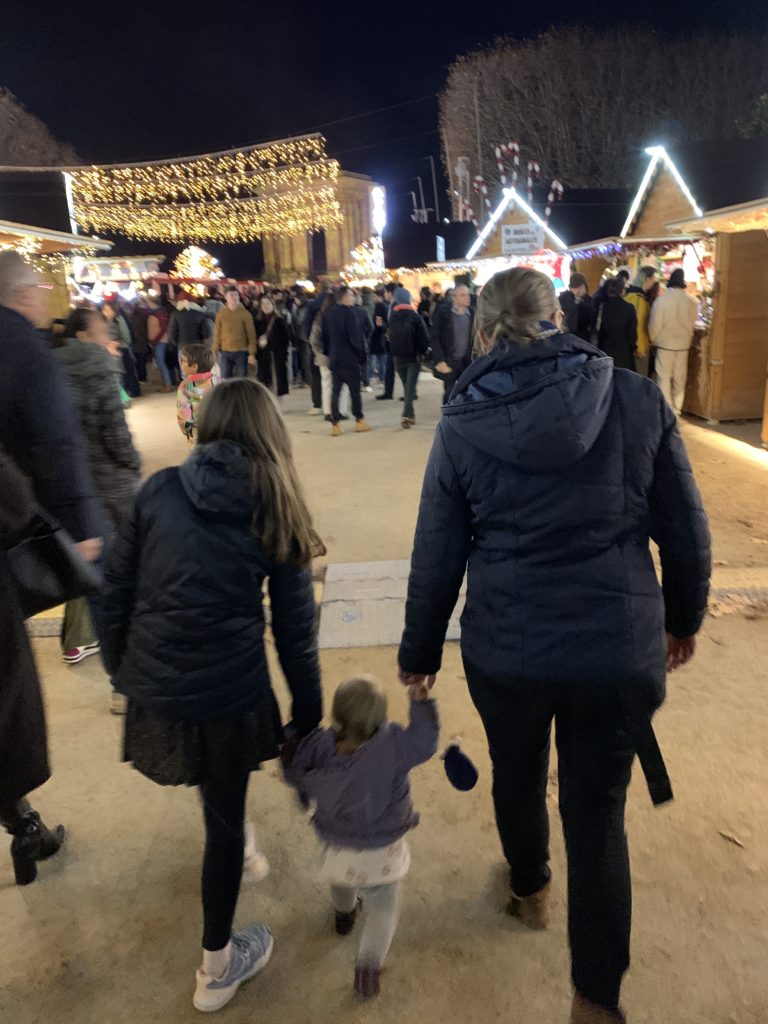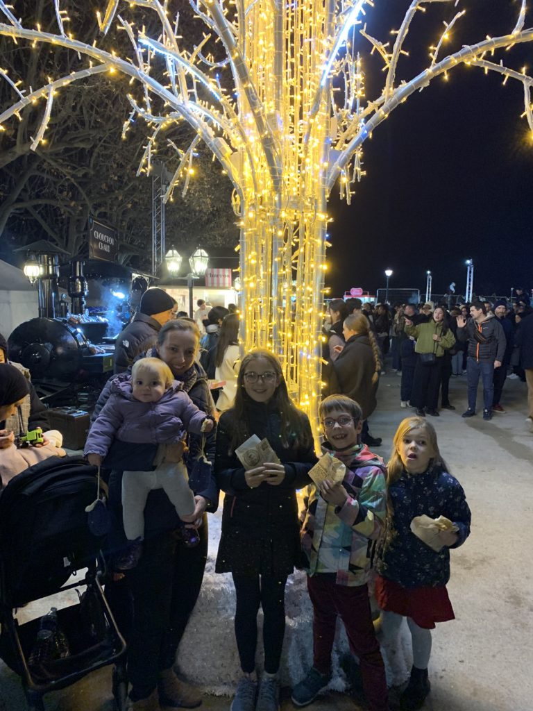 Pour fêter ça, nous sommes allés manger des bretzels au marché de Noël avant de rentrer jouer à la Wii dans notre nouvel espace de la salle de jeux !
