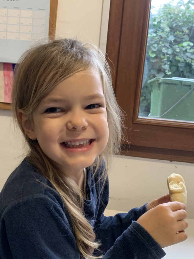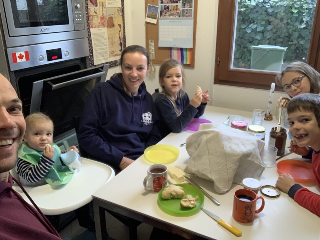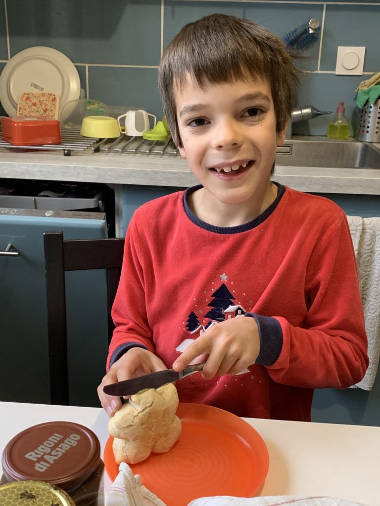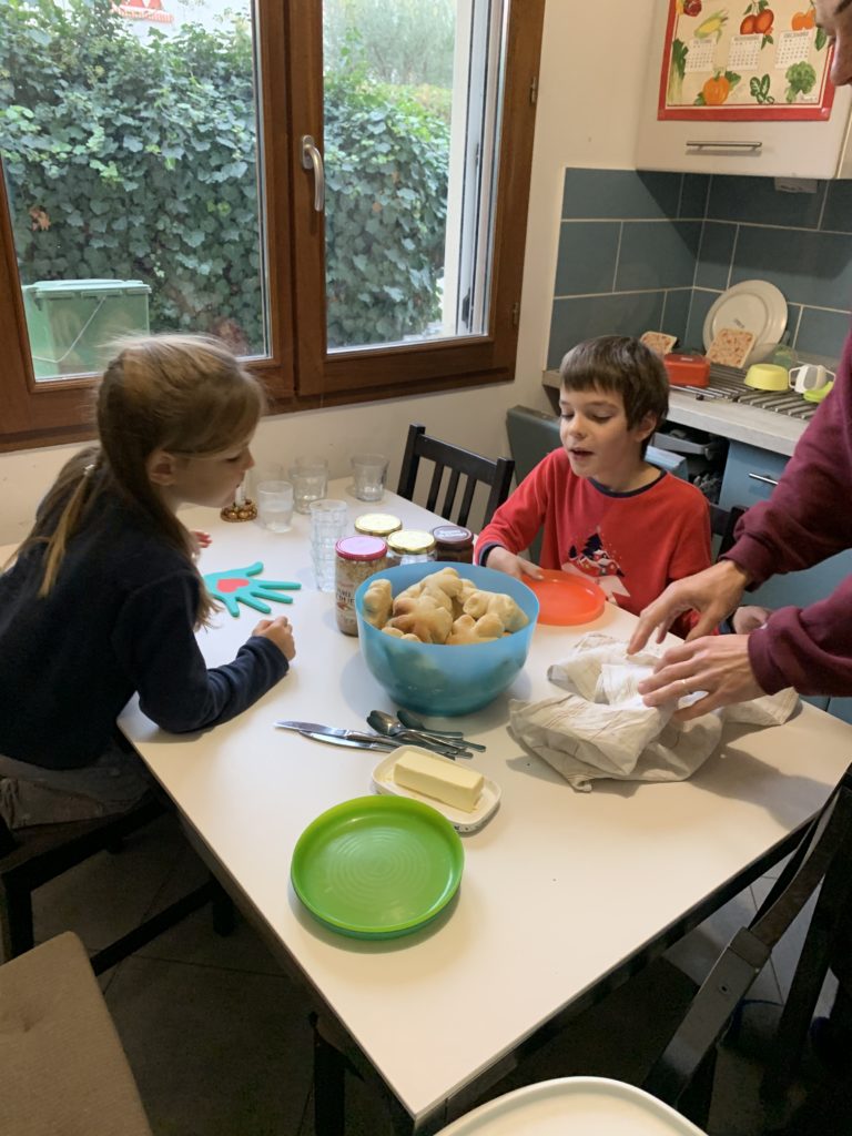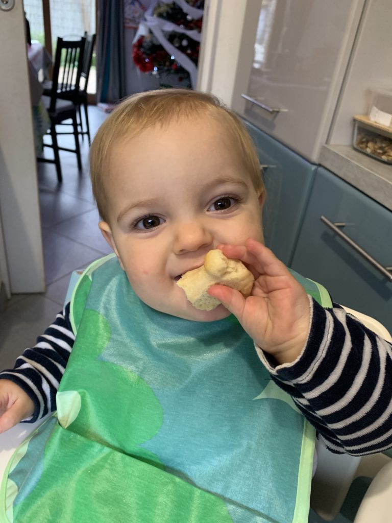 Première Saint Nicolas d’Alice 😉 Thomas avait préparé la pâte hier soir, et ce matin, aidé d’Émile, ils ont confectionné les manala.