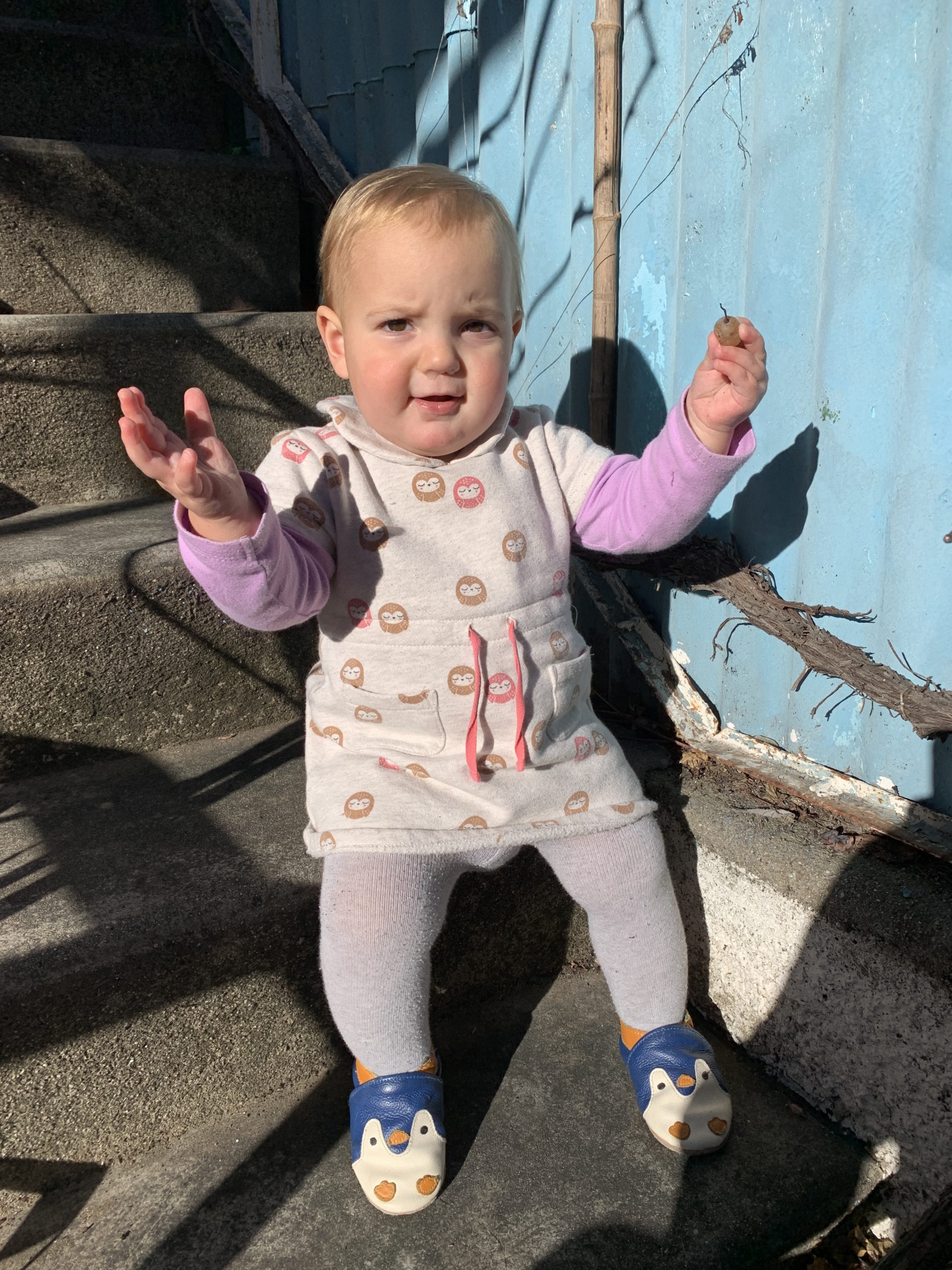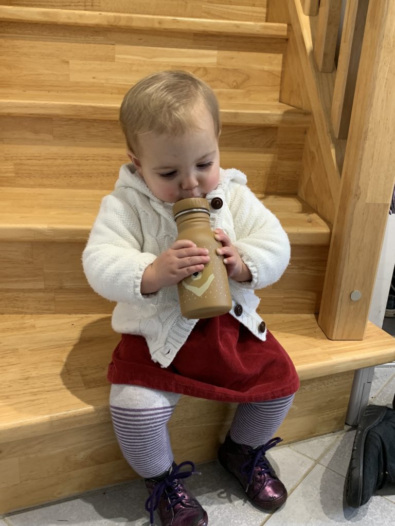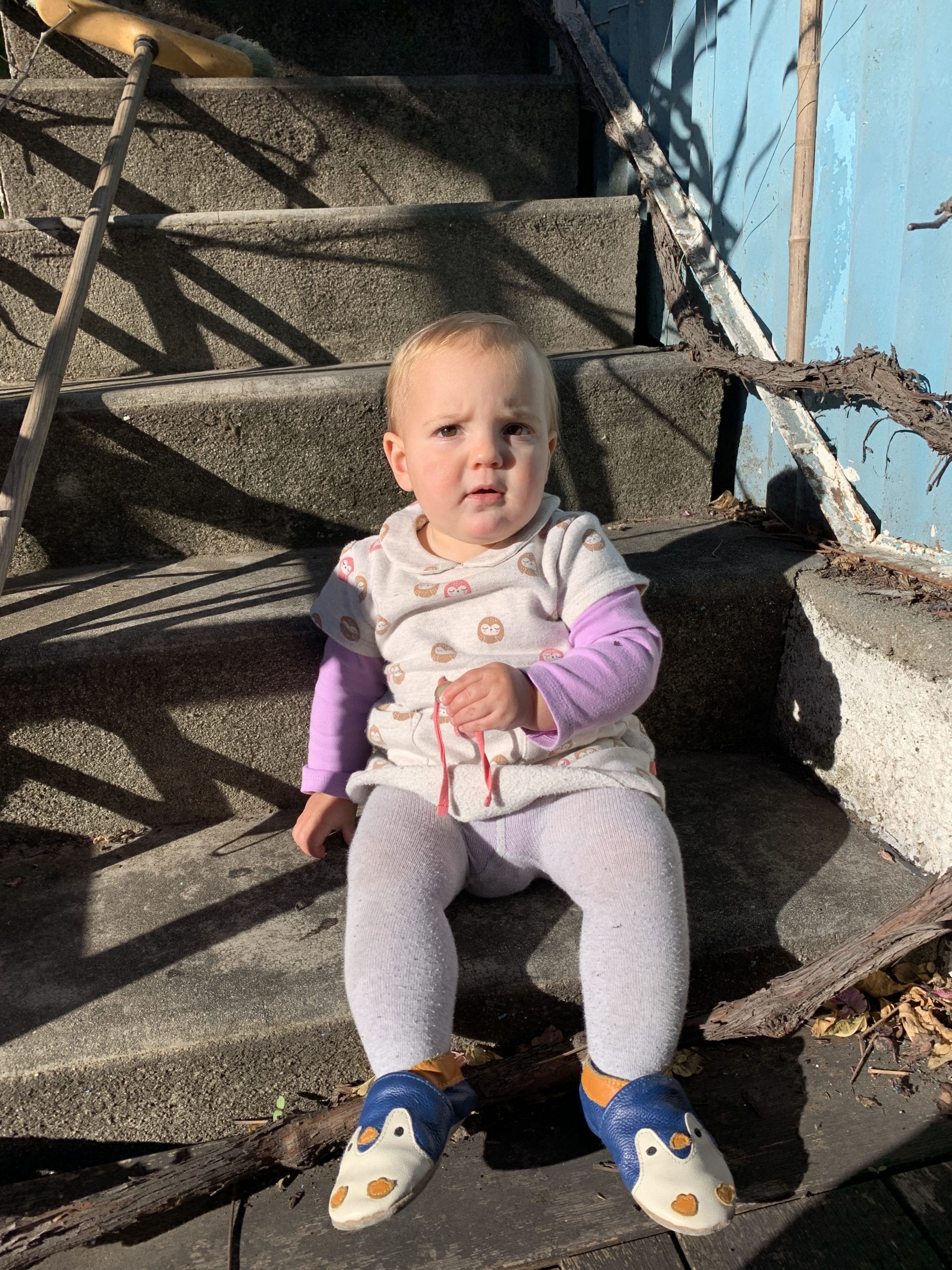 Alice adore s’asseoir sur tout ce qui fait une vingtaine de centimètres de haut. Voyez plutôt.