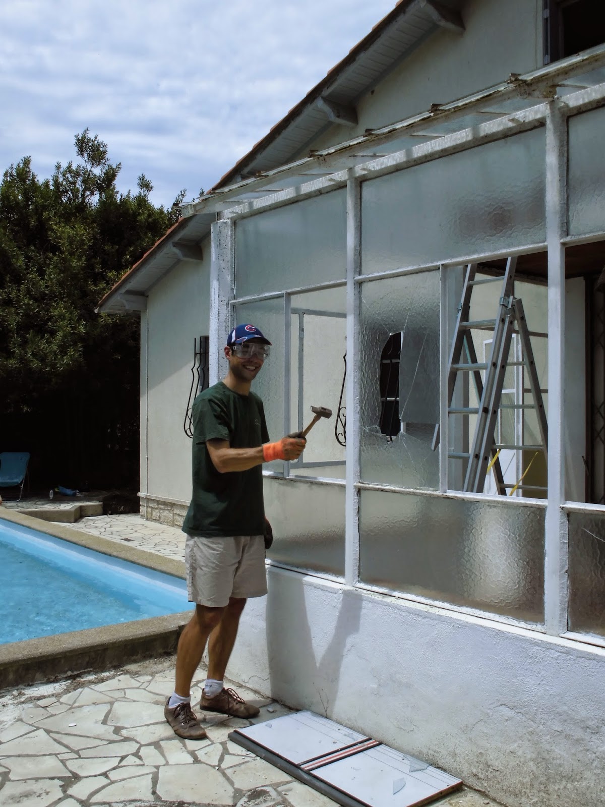 Nous avons maintenant attaqué sérieusement les démolitions, avant le début des travaux par les artisans. Le verre de la véranda
