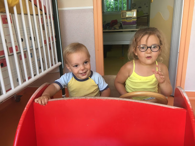 Cette après-midi, après notre glace en ville, nous sommes allés à la fête de la crèche d’Émile. Le thème était