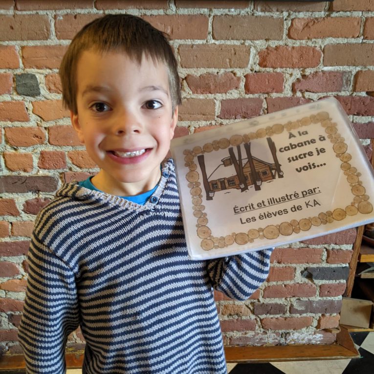 Continuer à lireAvec sa classe (il est en KA pour Kindergarten A), Émile a “écrit” trois livres, qu’il a ramené l’un après