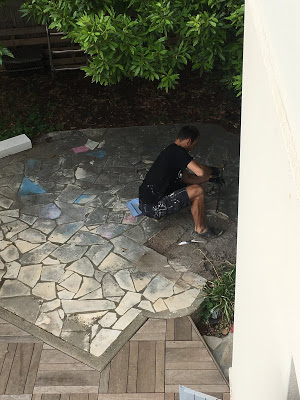 Continuer à lireCe week-end, Thomas a retiré le vieux bas de douche en béton qui était scellé au milieu de la terrasse