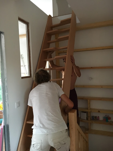 Continuer à lireAprès l’avoir vernie puis montée, l’échelle pour accéder à la mezzanine est maintenant posée ! Elle n’est pas encore fixée