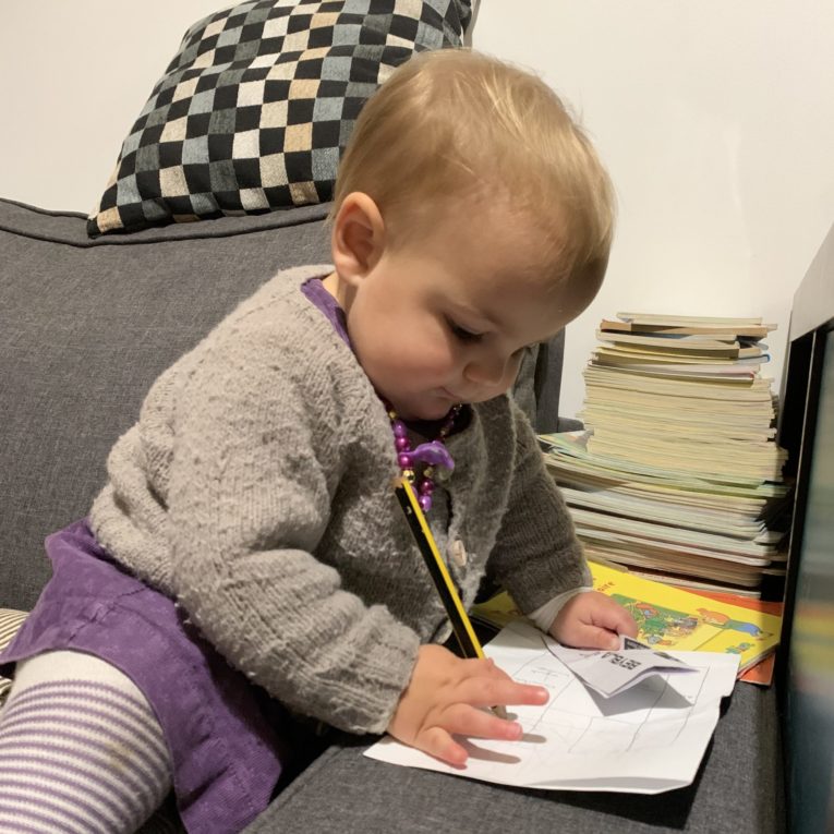 Alice aime beaucoup jouer avec les boules du sapin ! Magnifique lever de soleil mardi matin … et Alice avec